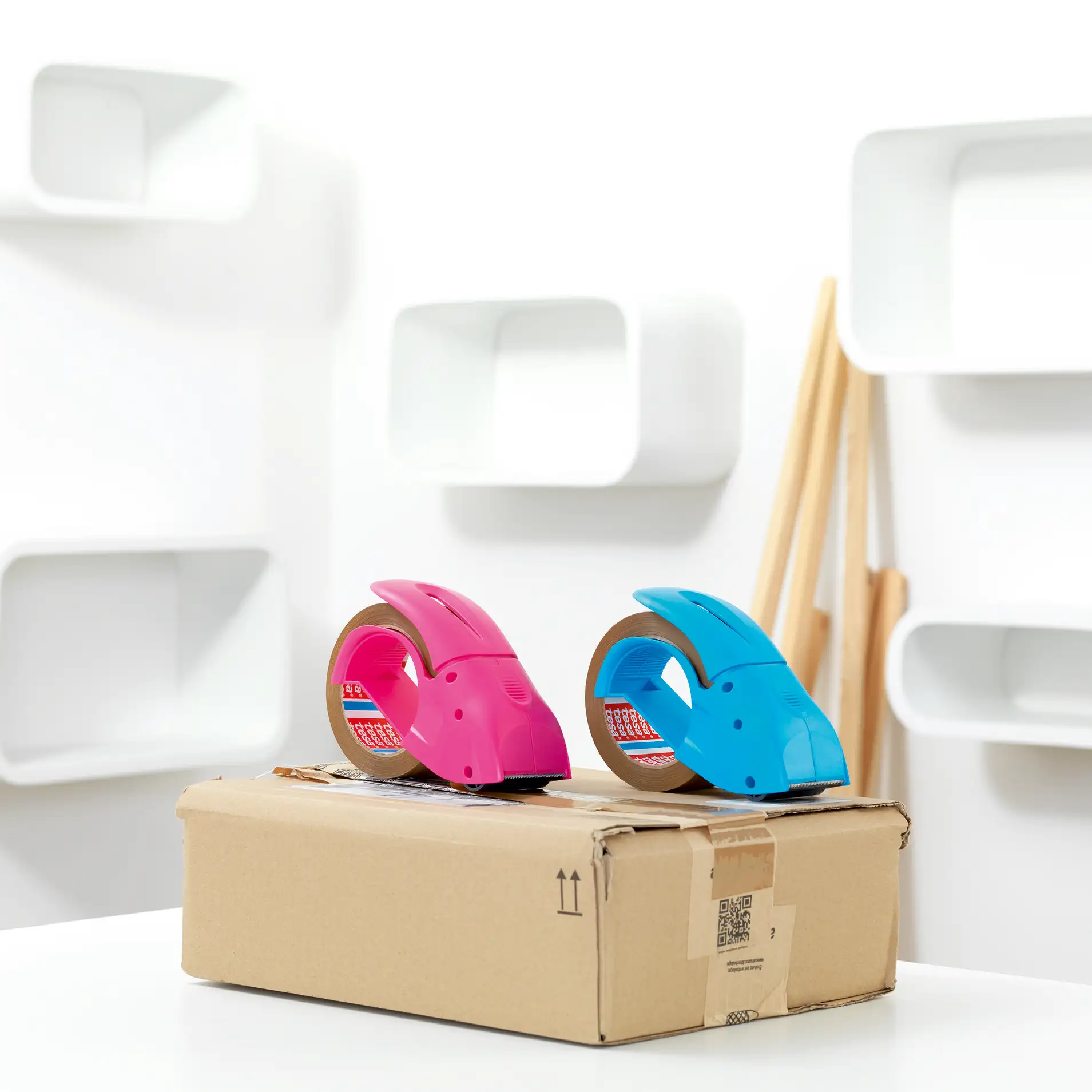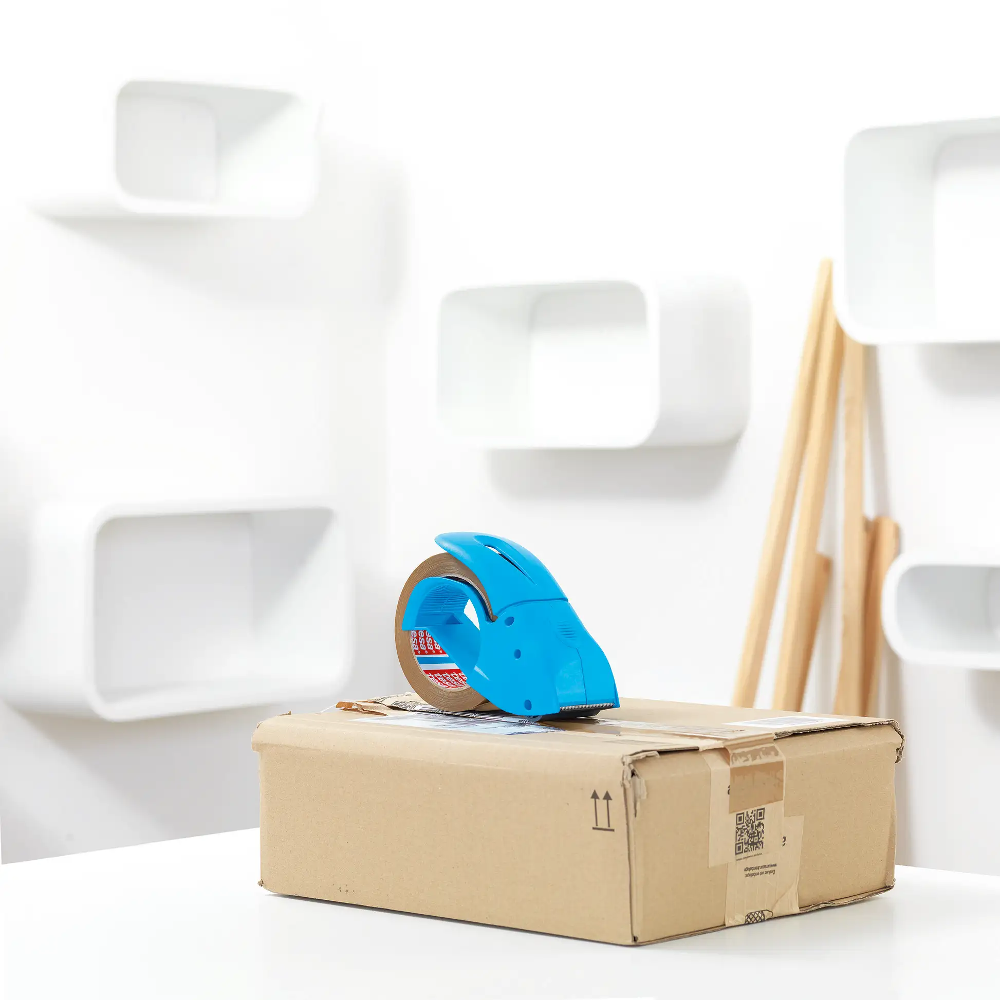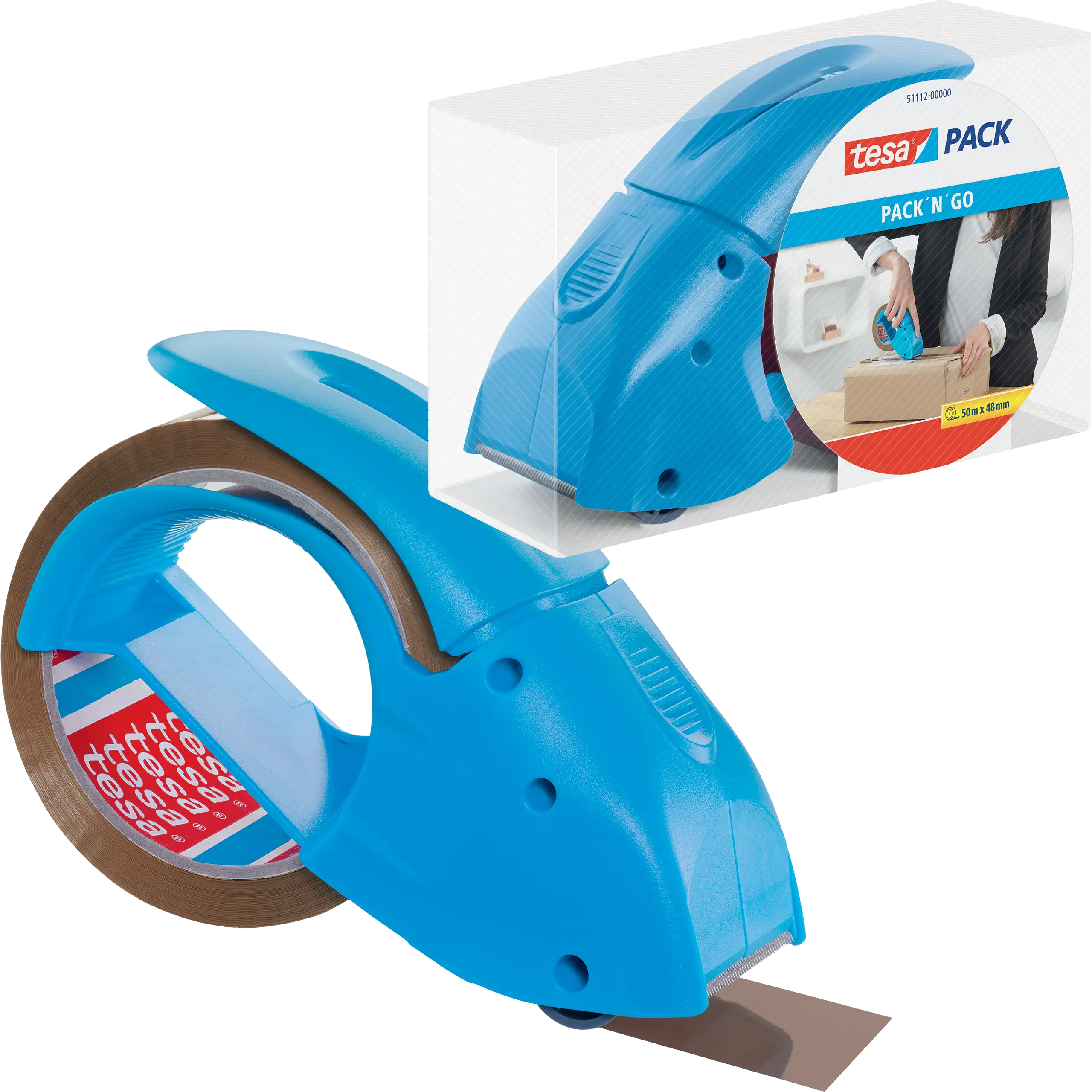 tesapack® Pack-n-Go to ręczny dyspenser taśmy pakowej , stworzony z myślą o szybkim i precyzyjnym zaklejaniu kartonów.