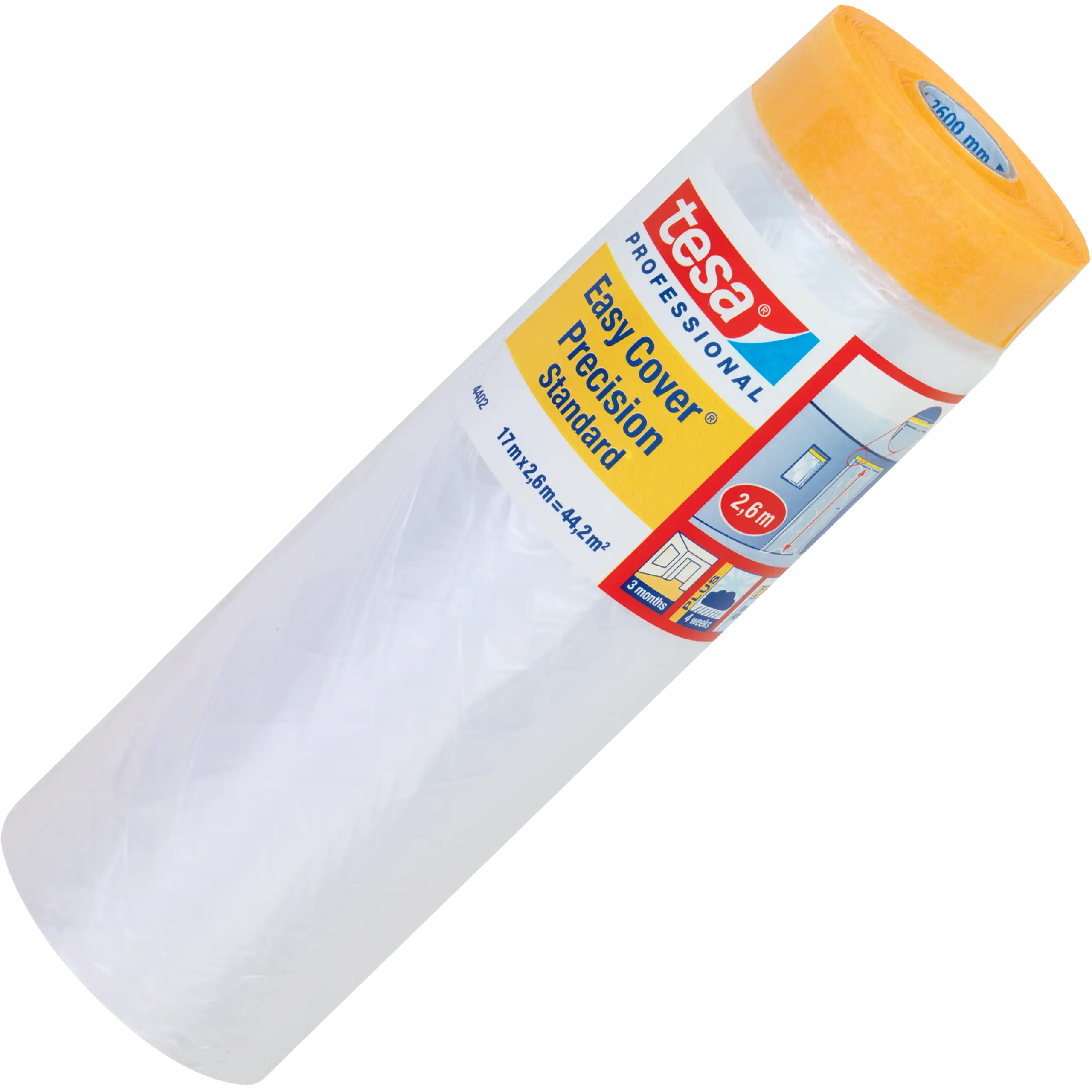 tesa® 4402 łączy folię malarską z taśmą tesa® Precision Mask® Standard, tworząc niezawodne rozwiązanie 2 w 1.