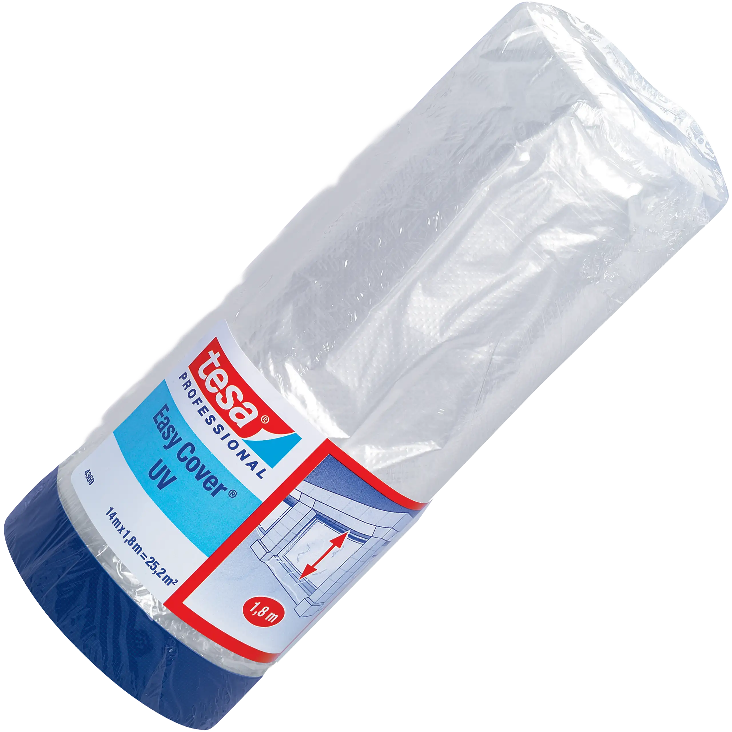 tesa® 4369 UV łączy półprzezroczystą folię HDPE z wytrzymałą taśmą tkaninową, co pozwala w szybki i skuteczny sposób zabezpieczyć duże powierzchnie podczas prac malarskich i tynkarskich.