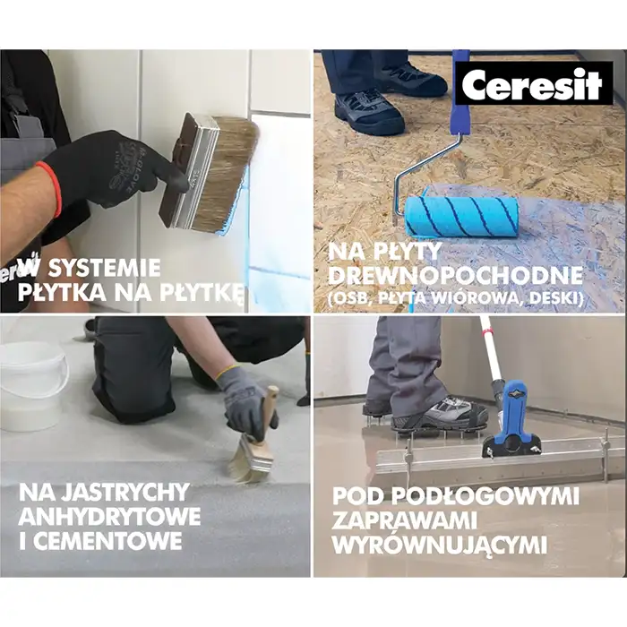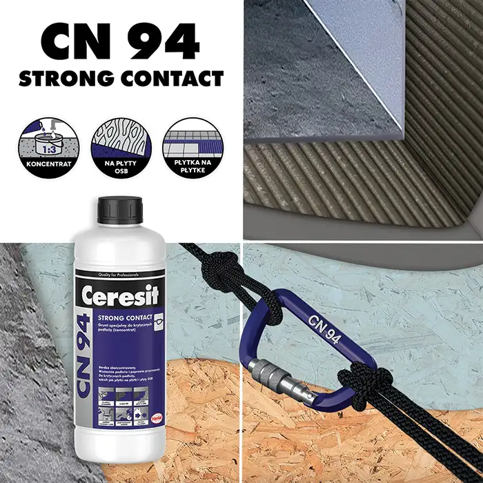 Preparat Ceresit CN 94 znajduje zastosowanie przy gruntowaniu różnorodnych podłoży – od jastrychów anhydrytowych i cementowych, przez beton, płyty gipsowe, OSB, drewno , aż po płytki ceramiczne i kamienne .