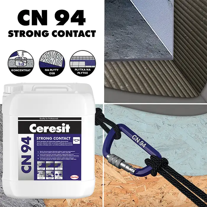 Preparat Ceresit CN 94 znajduje zastosowanie przy gruntowaniu różnorodnych podłoży – od jastrychów anhydrytowych i cementowych, przez beton, płyty gipsowe, OSB, drewno , aż po płytki ceramiczne i kamienne .