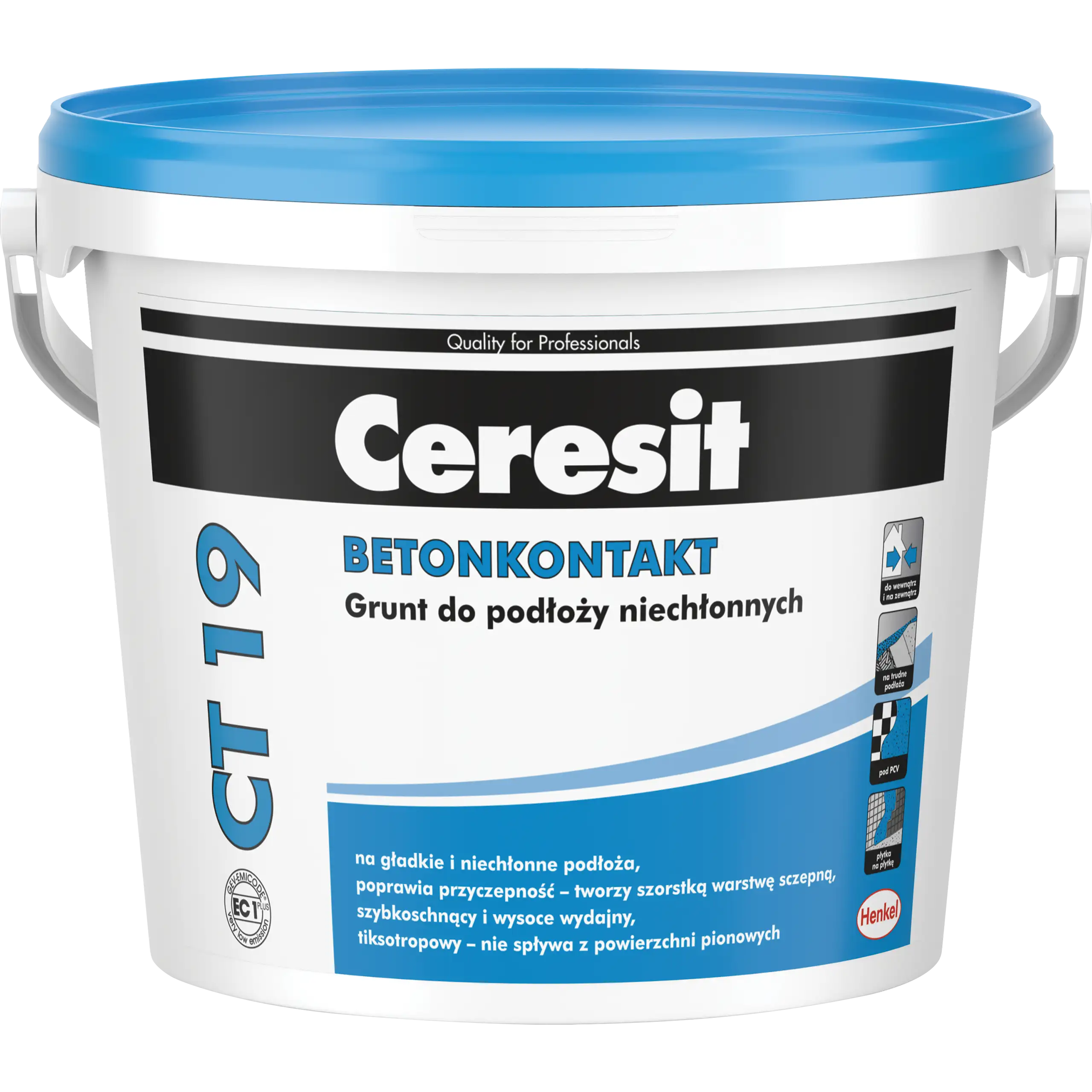 Ceresit CT 19 to bezrozpuszczalnikowy grunt sczepny , przeznaczony do gruntowania powierzchni przed układaniem zapraw klejących, wyrównujących i szpachlowych.