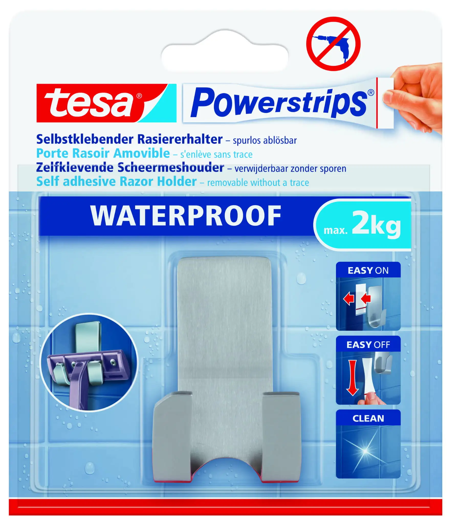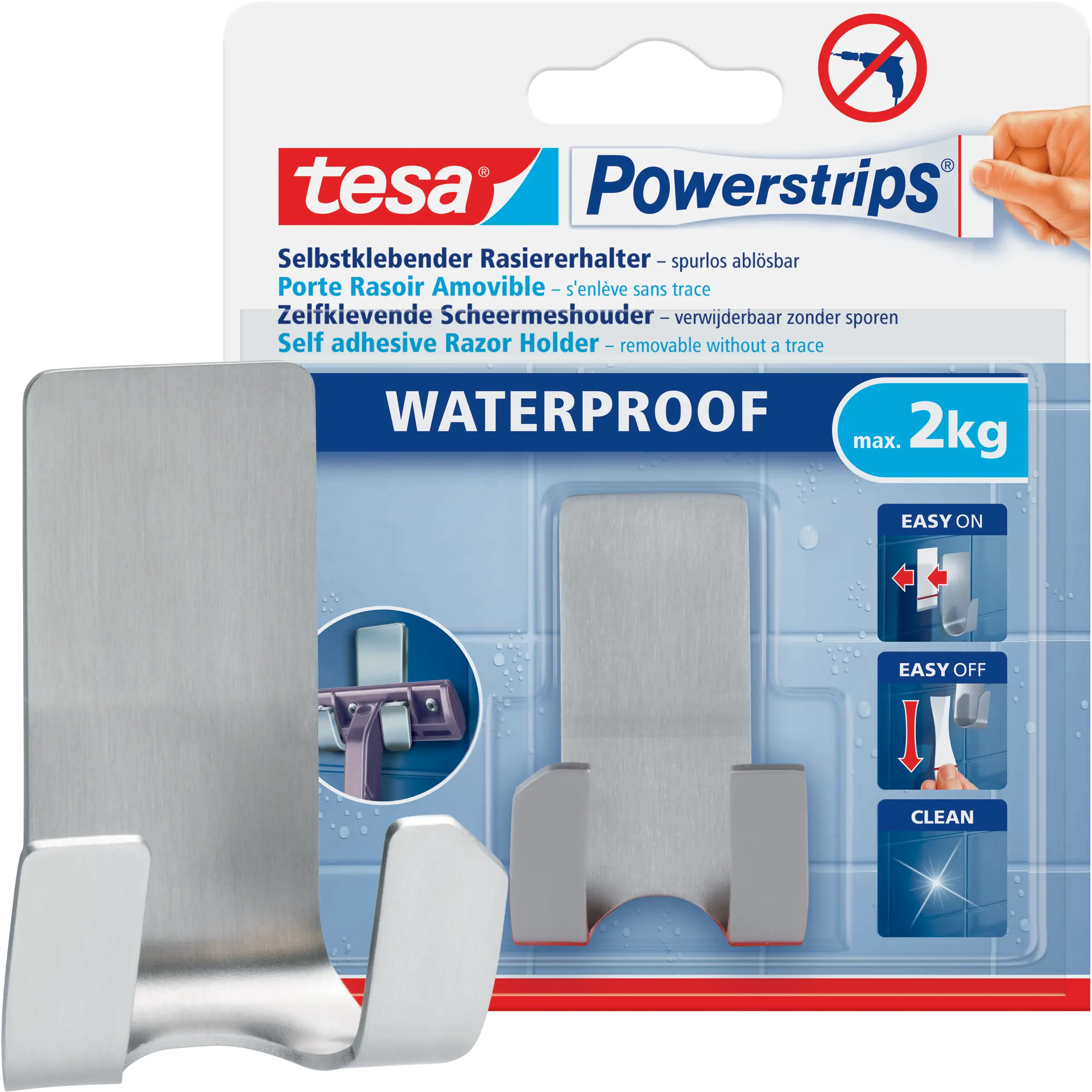 Haczyk Samoprzylepny Łazienkowy Tesa Powerstrips Uchwyt Na Maszynkę Srebrny Metalowy 2 kg