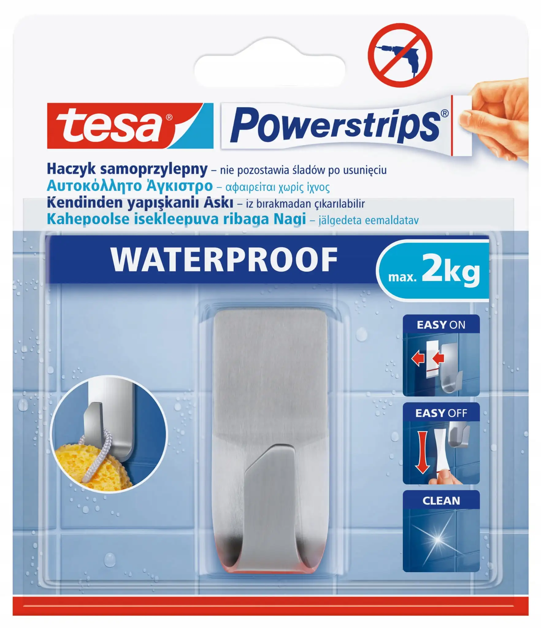 Haczyk Samoprzylepny Łazienkowy do Wieszania Tesa POWERSTRIPS Stal Nierdzewna 2 kg