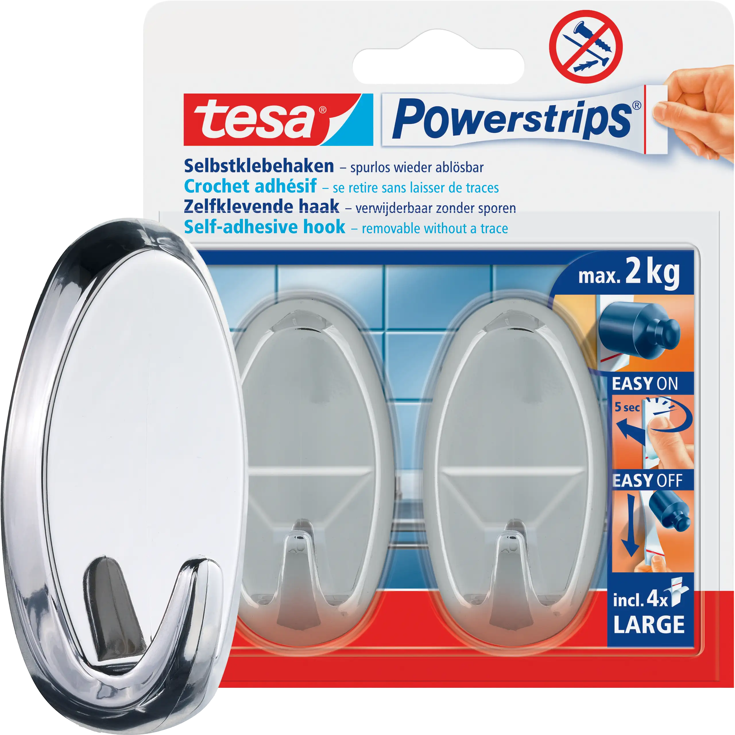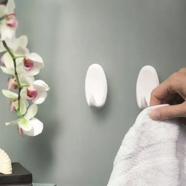 Klasyczne haczyki tesa Powerstrips wyróżniają się ponadczasowym wzornictwem, które pasuje do każdego nowoczesnego wnętrza. Dzięki owalnemu kształtowi i wykonaniu z trwałego polistyrenu (PS), są zarówno estetyczne, jak i praktyczne. Idealnie nadają się do wieszania ręczników i ścierek w kuchni oraz łazience, zapewniając eleganckie rozwiązanie do organizacji przestrzeni.