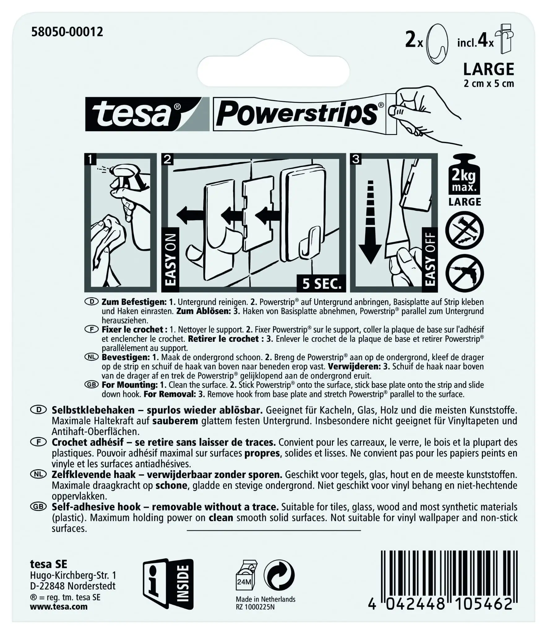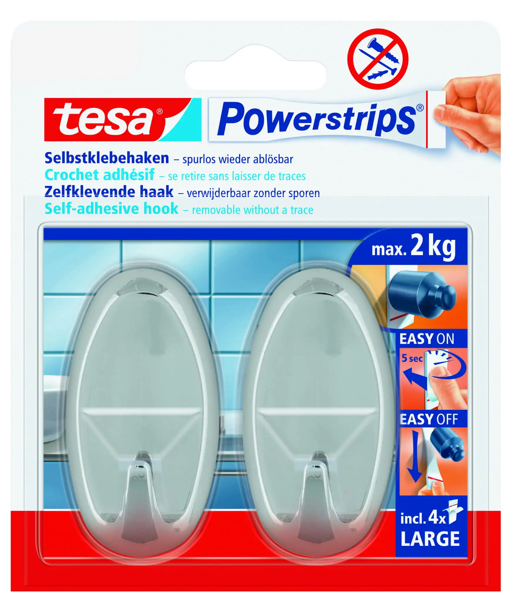 Haczyki Samoprzylepne Do Wieszania Tesa Powerstrips Do Łazienki 2 kg 2 szt