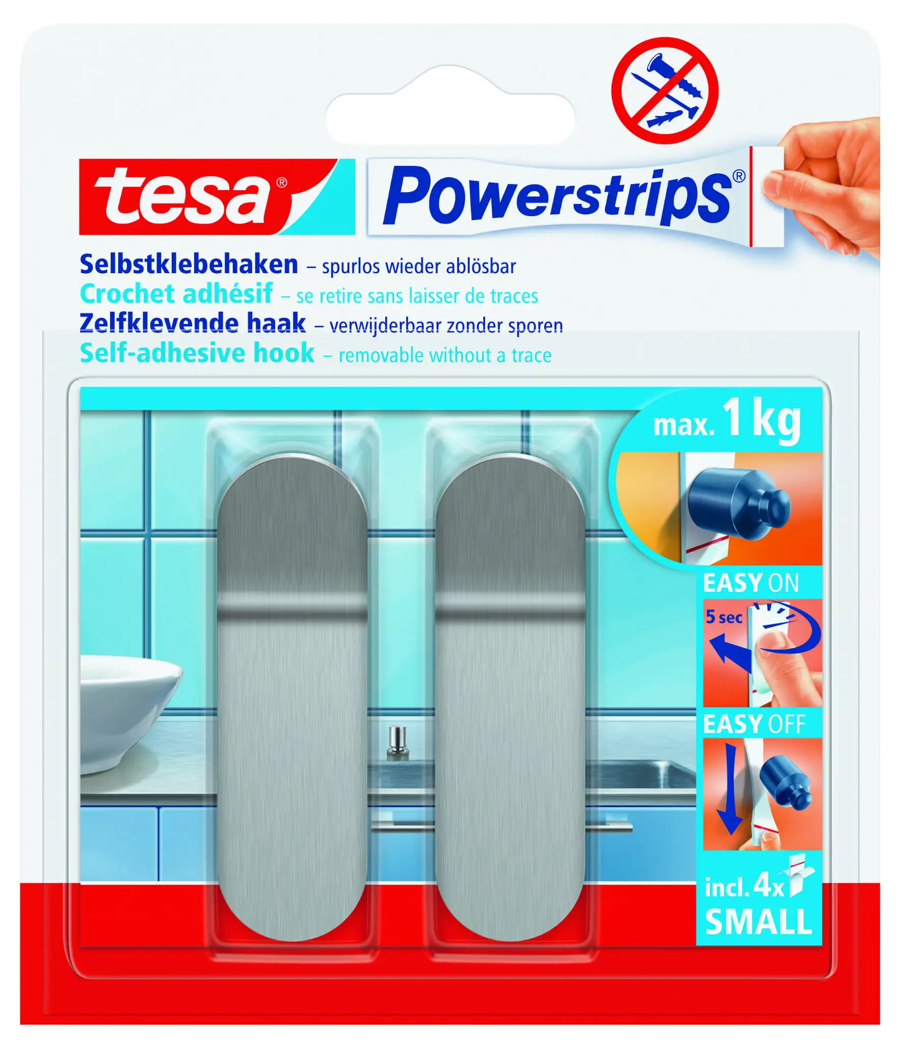 Haczyki Samoprzylepne Do Łazienki Kuchni Tesa Powerstrips Do Wieszania Ręczników 1kg 2 szt Metalowe