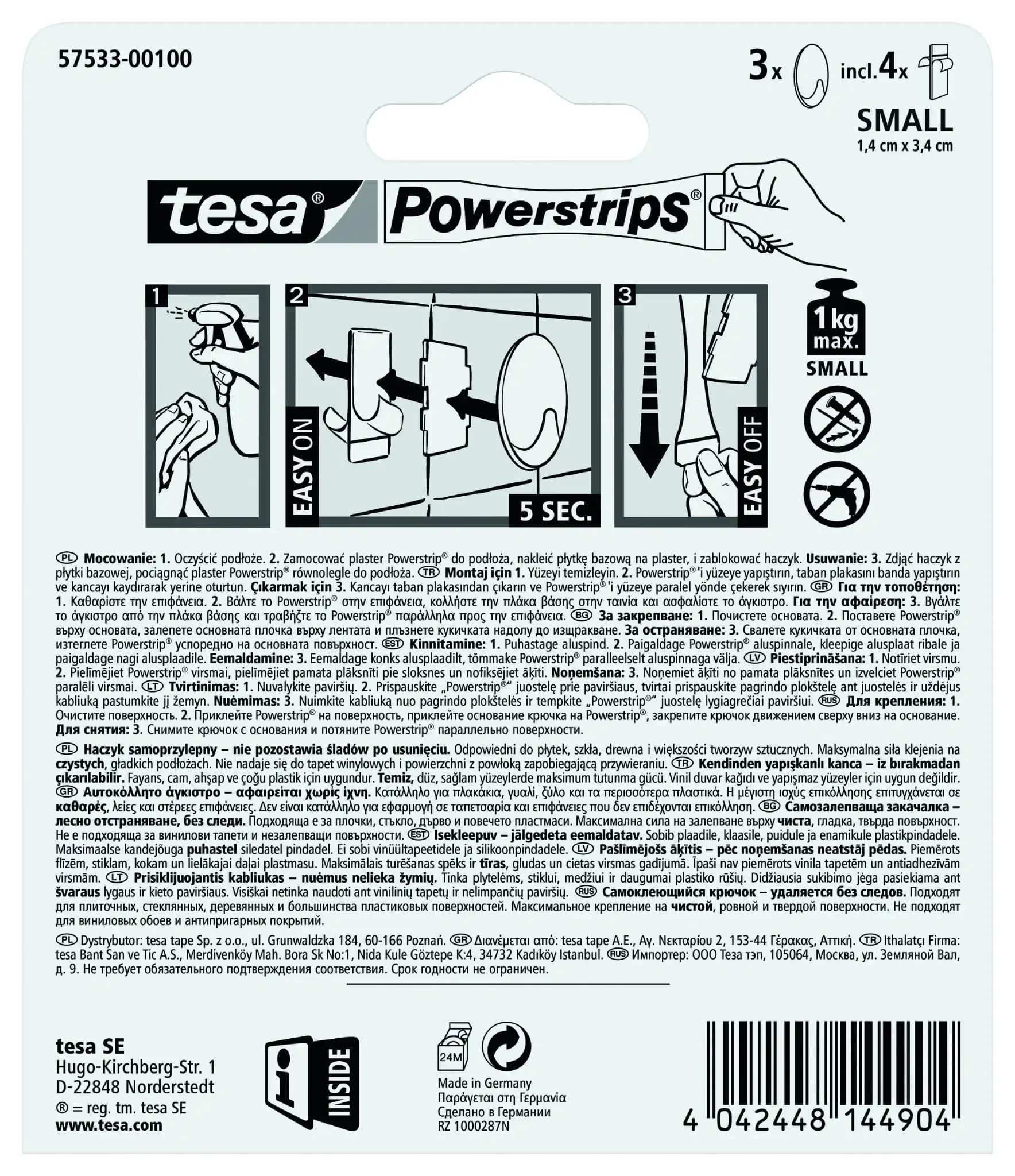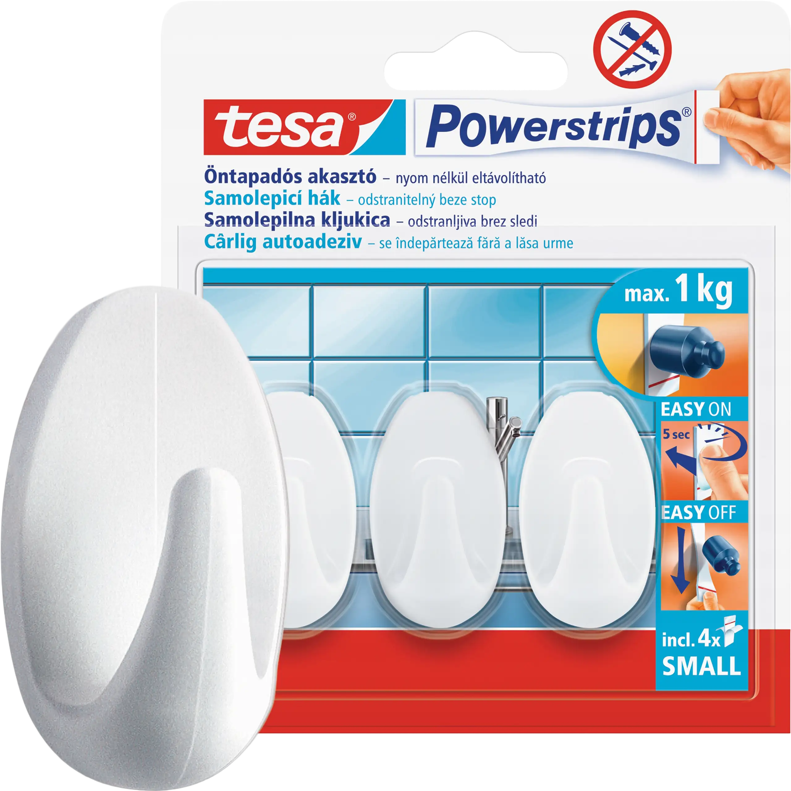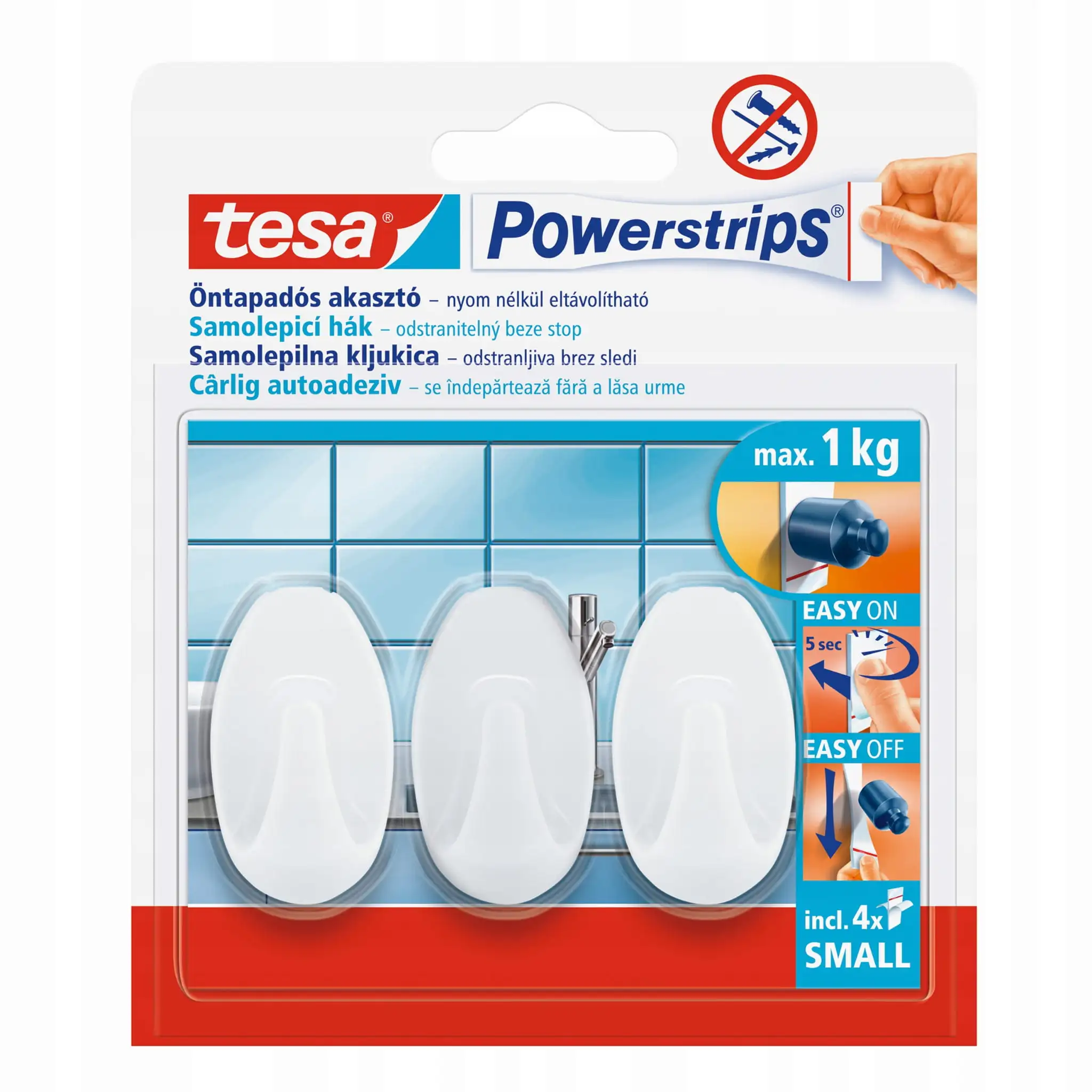 Haczyki Samoprzylepne Łazienkowe Tesa Powerstrips Do Wieszania 1kg 3 szt