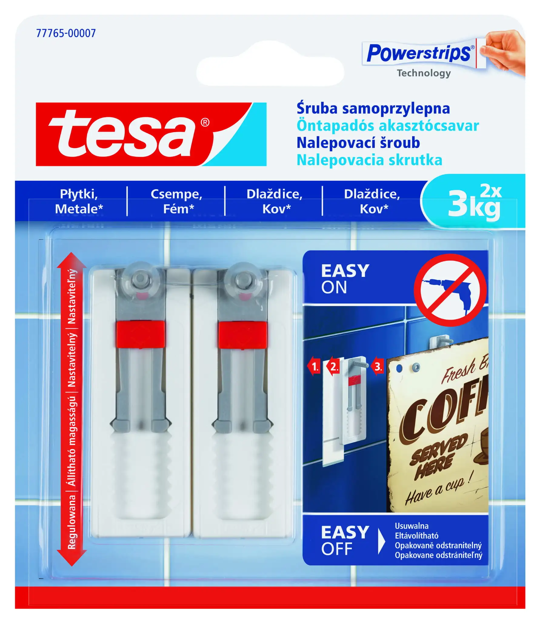 Haczyki Samoprzylepne Tesa Śruba Regulowana Do Płytek Metalu 2 szt 3 kg