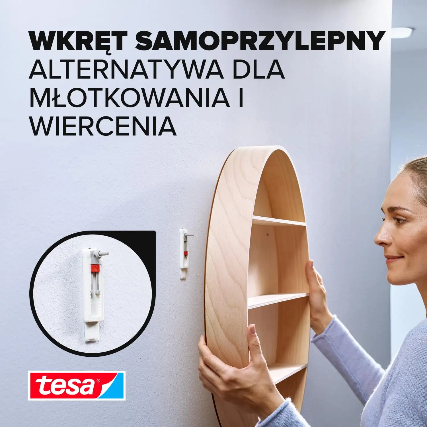 Śruba samoprzylepna tesa® umożliwia szybkie i bezproblemowe przymocowanie dekoracji na tapecie czy tynku. Dzięki technologii samoprzylepnej unikniesz uszkodzeń powierzchni i nieestetycznych dziur.