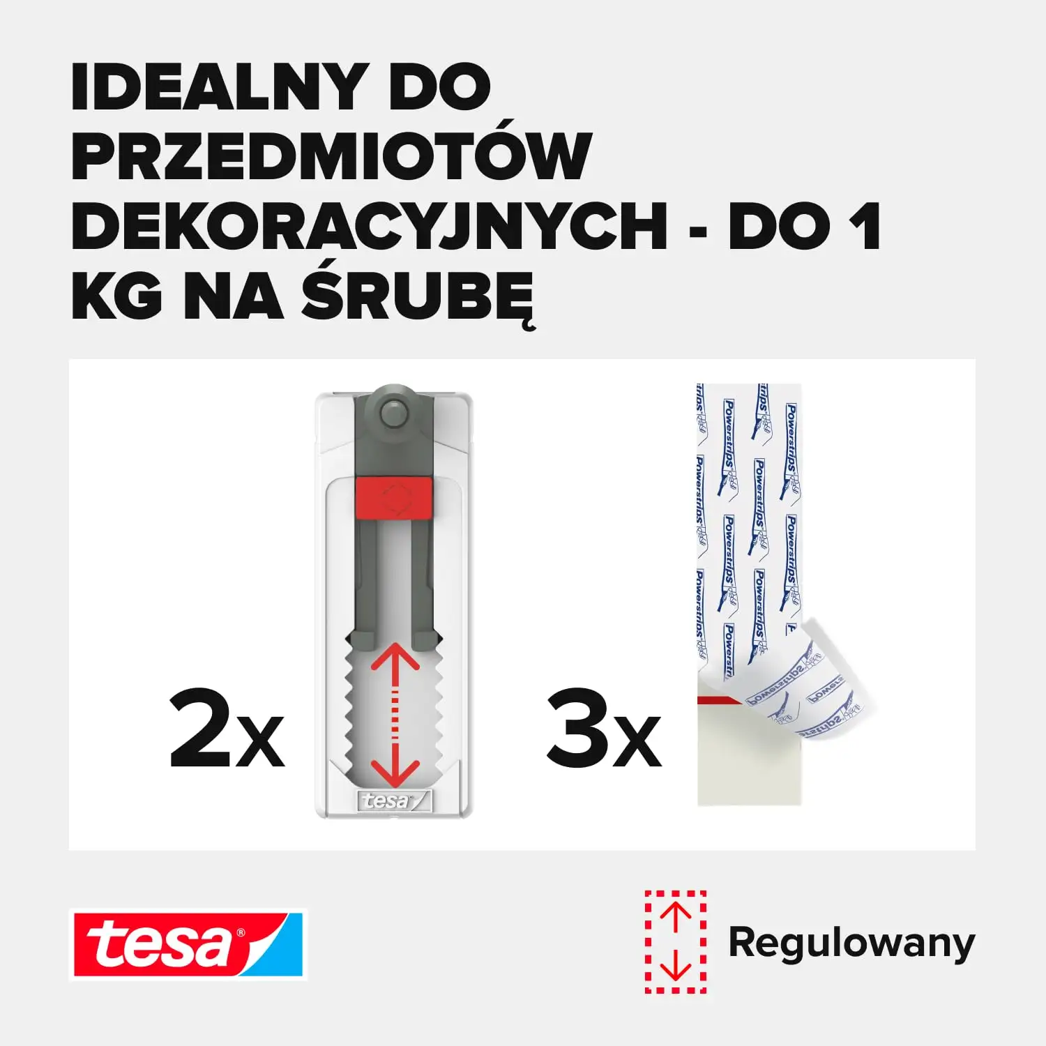 Haczyki Samoprzylepne Tesa Śruba Regulowana Do Tapet Tynku 2 szt 1 kg