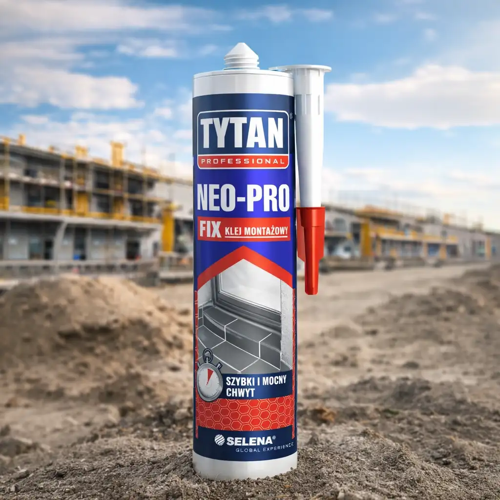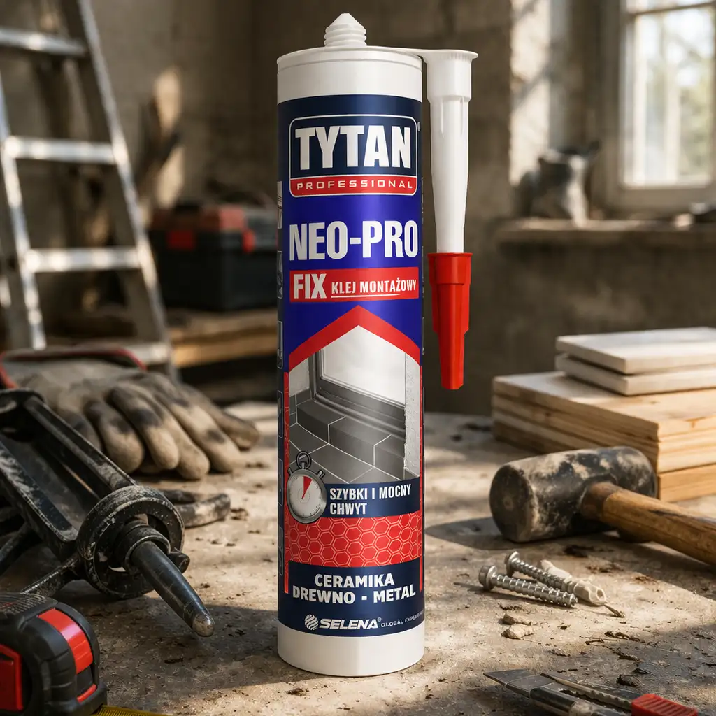 Klej montażowy TYTAN Professional NEO-PRO FIX zapewnia bardzo mocny chwyt początkowy, który pozwala szybko i stabilnie łączyć elementy bez konieczności długiego podpierania. Dzięki wysokiej sile wiązania tworzy trwałe połączenia odporne na codzienne użytkowanie. To idealne rozwiązanie do profesjonalnych prac montażowych i wykończeniowych.