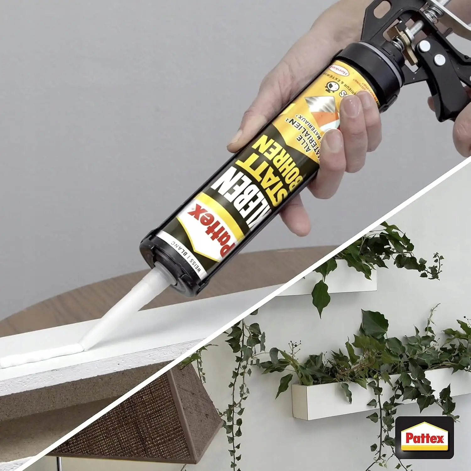 Pattex One For All Express może być stosowany na drewno, cegłę, ceramikę, beton, płyty g-k, kamień, metal, szkło, lustra (zgodne z DIN EN 1036-1), plastik i styropian. Dzięki temu doskonale sprawdzi się w pracach remontowych i budowlanych zarówno wewnątrz, jak i na zewnątrz budynków.