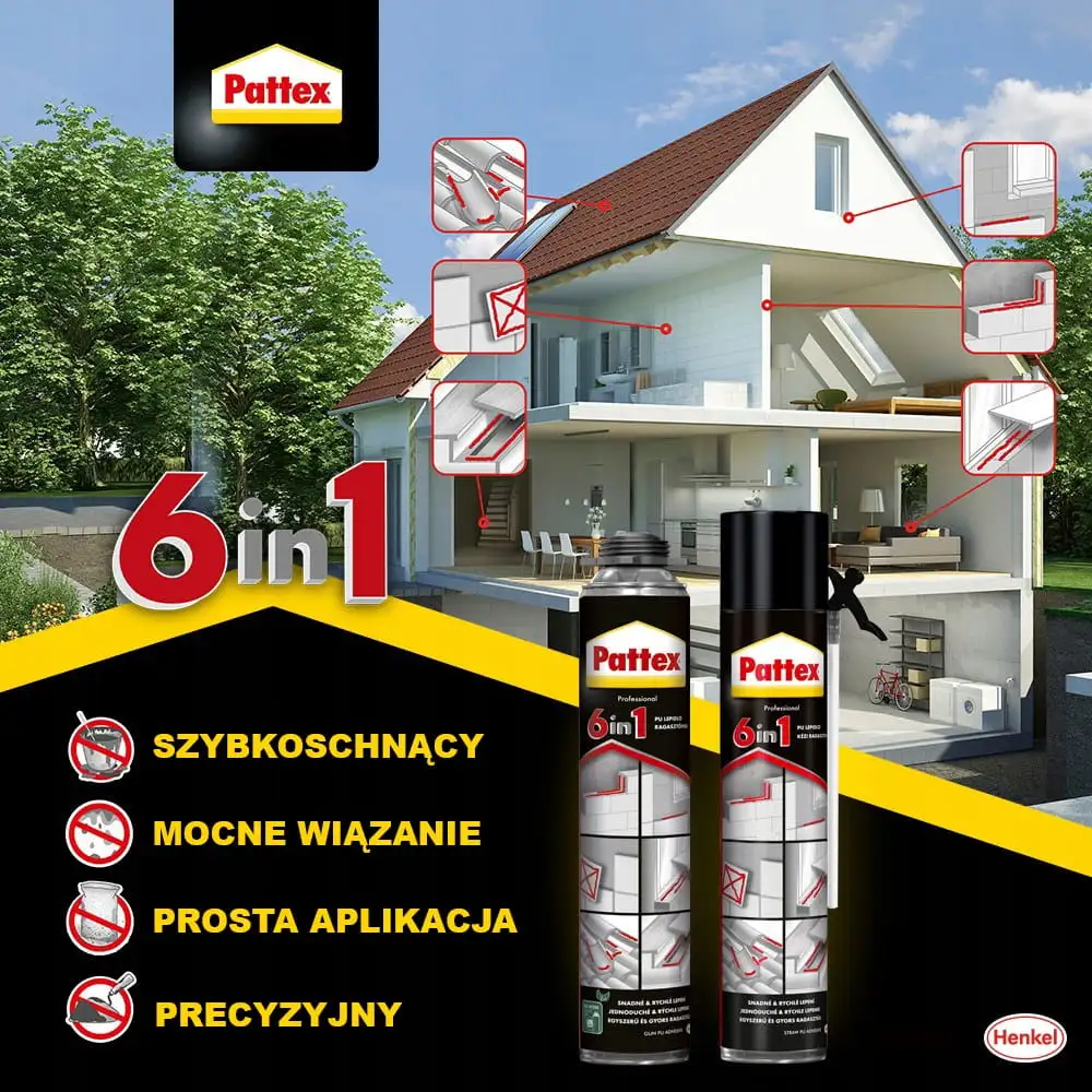 Klej PU Uniwersalny Pattex 6in1 Pistoletowy Jednoskładnikowy Mocny 750 ml
