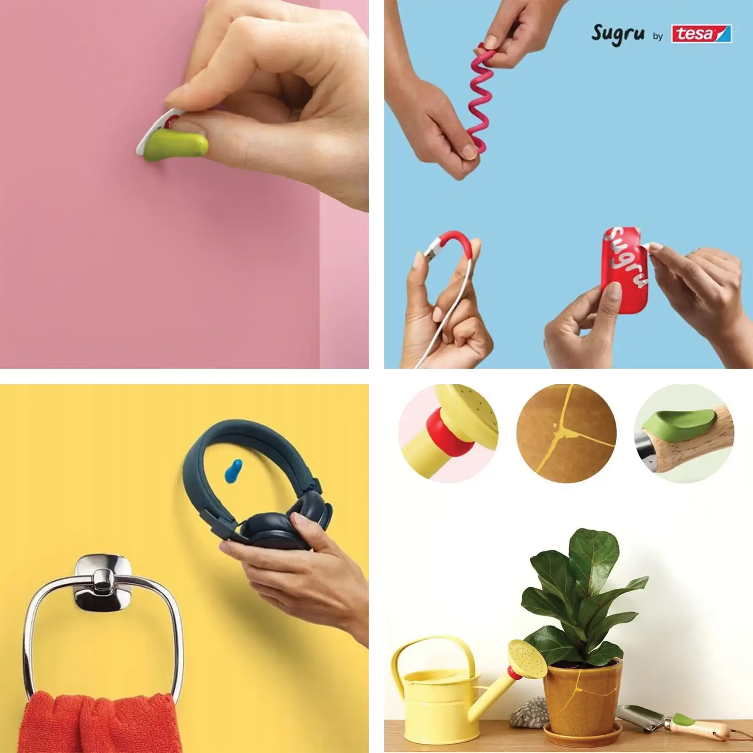 Sugru pozwala na remonty, mocowania i uszczelnienia bez użycia tradycyjnych narzędzi. Po uformowaniu i przyłożeniu do powierzchni (np. metalu, szkła, drewna) trwale ją połączy, tworząc elastyczną warstwę odporą na wodę i temperatury. To świetne rozwiązanie do napraw sprzętów domowych, elementów wyposażenia lub montażu drobnych akcesoriów.