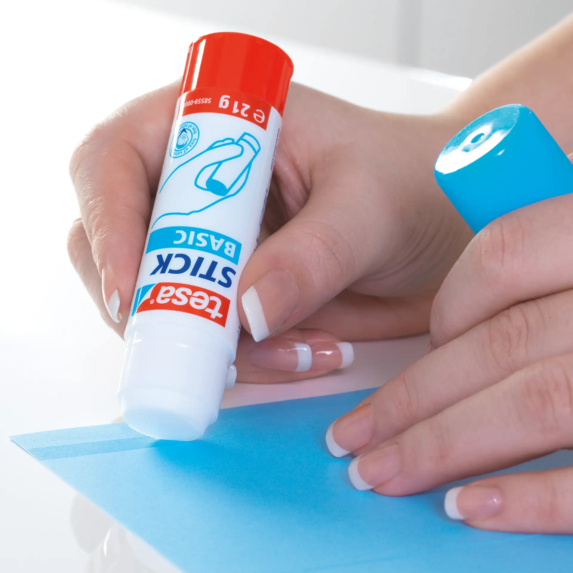 tesa® Stick Basic to niezastąpiony klej w sztyfcie, który pozwala szybko i czysto sklejać papier oraz karton.