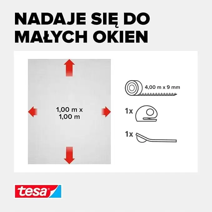 Moskitiera może zostać usunięta w dowolnym momencie bez pozostawiania śladów kleju ani uszkodzenia powierzchni.