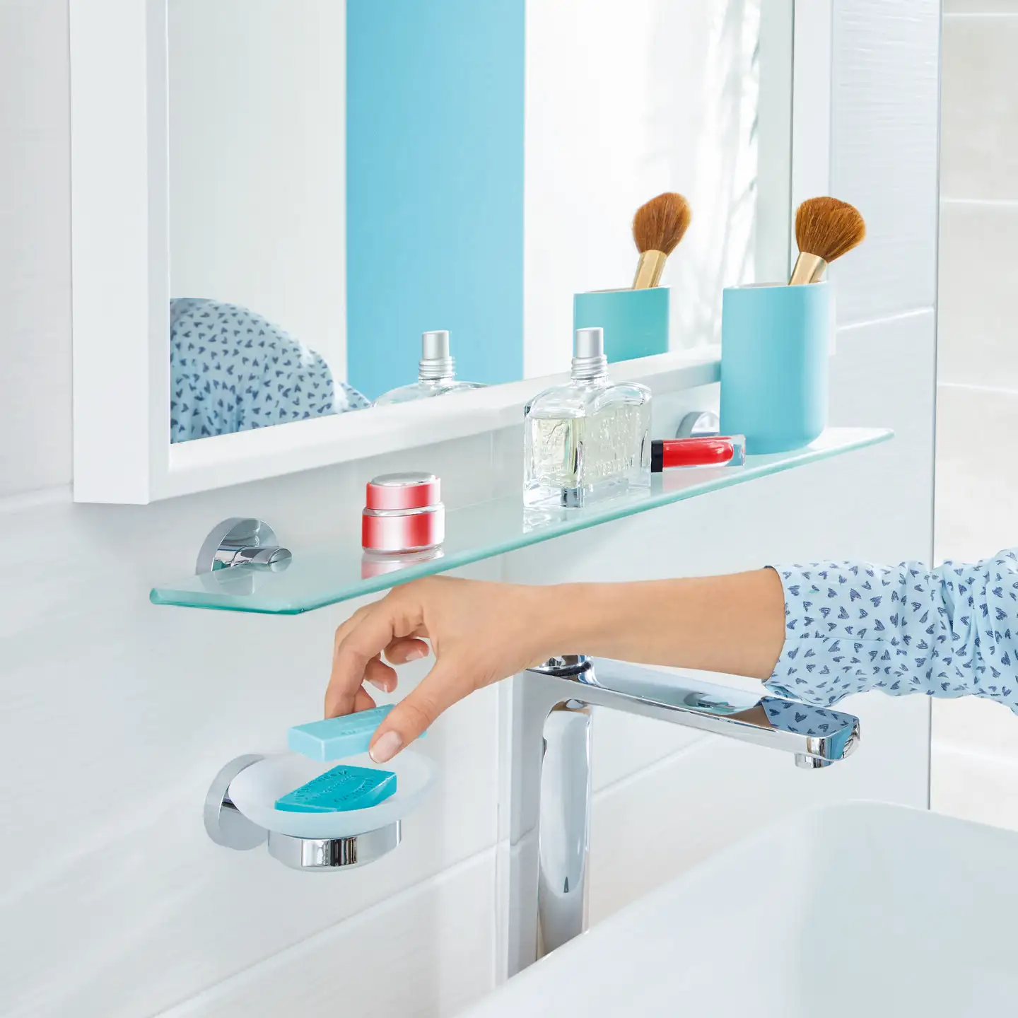 Akcesoria z serii tesa® Smooz wyróżniają się okrągłymi, miękkimi liniami oraz chromowanym wykończeniem na wysoki połysk , które nadają im nowoczesny i elegancki wygląd.