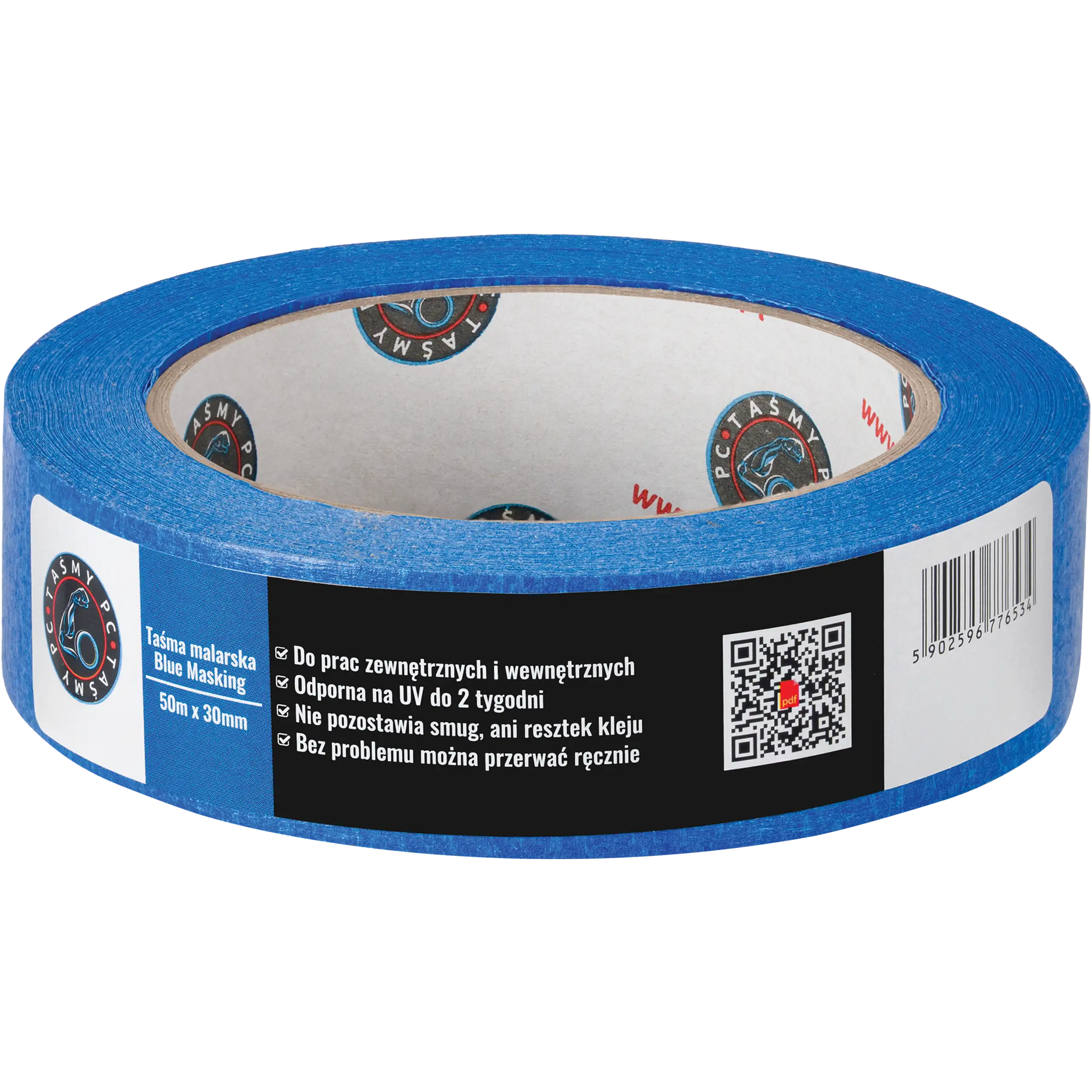 Taśma Malarska Papierowa Maskująca UV Tape 30 mm x 50m Zewnętrzna Niebieska