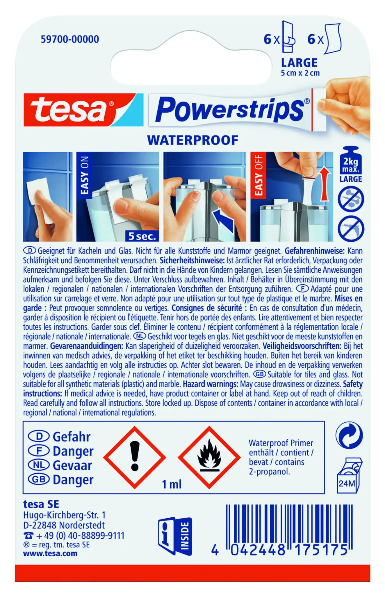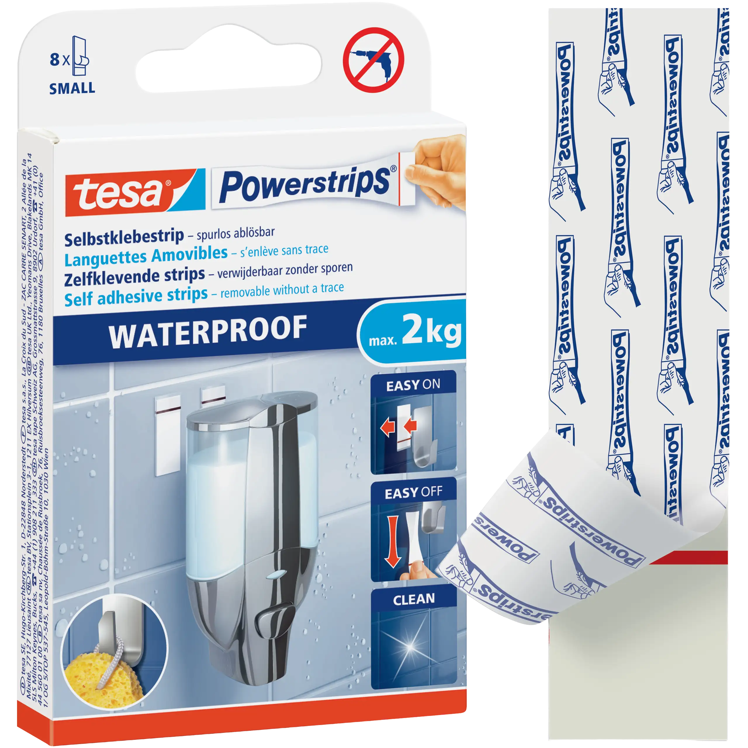 Plastry tesa® Powerstrips zostały opracowane specjalnie z myślą o pomieszczeniach o podwyższonej wilgotności. Doskonale sprawdzają się przy prysznicu, wannie czy umywalce, oferując pewne i trwałe mocowanie akcesoriów bez konieczności użycia wiertarki.