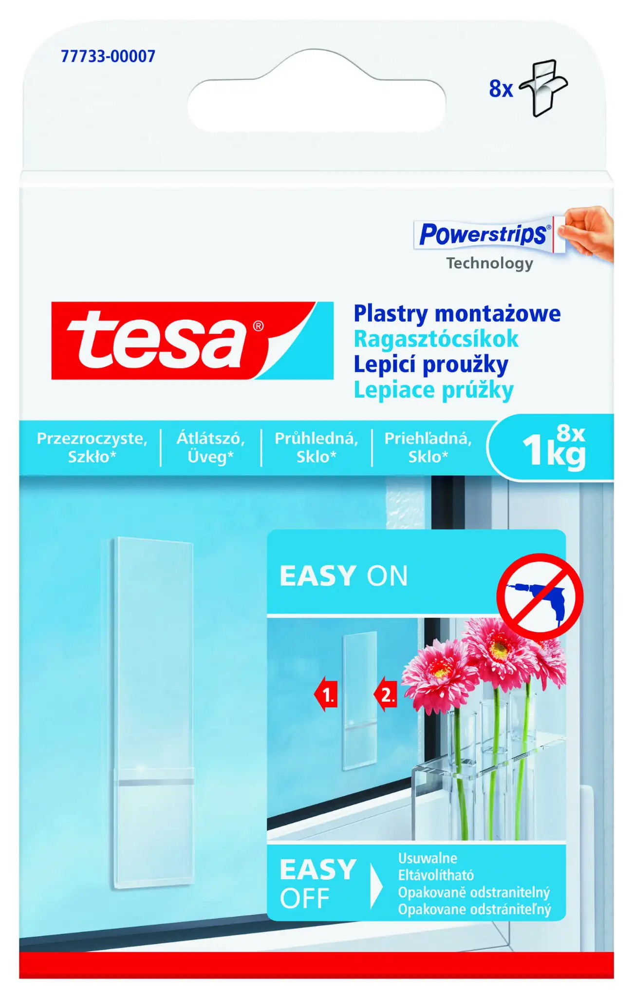 Plastry montażowe tesa® zapewniają pewne utrzymanie przedmiotów do 1 kg na szkle i powierzchniach przezroczystych.