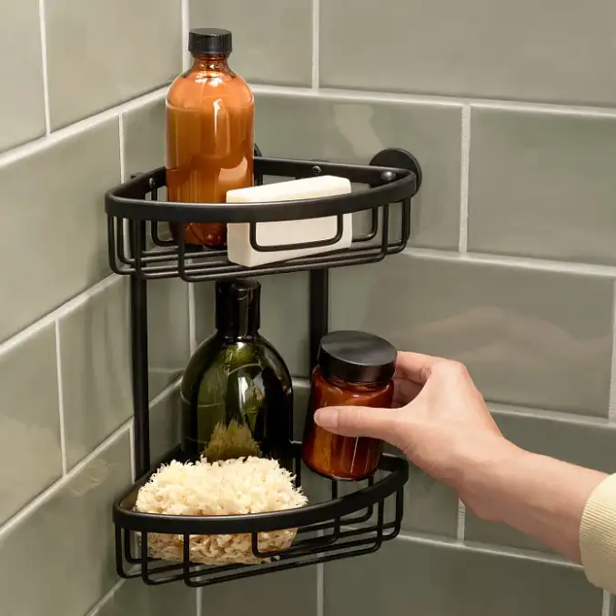 Półka Łazienkowa Samoprzylepna Narożna Tesa ALUXX BLACK Koszyk Pod Prysznic