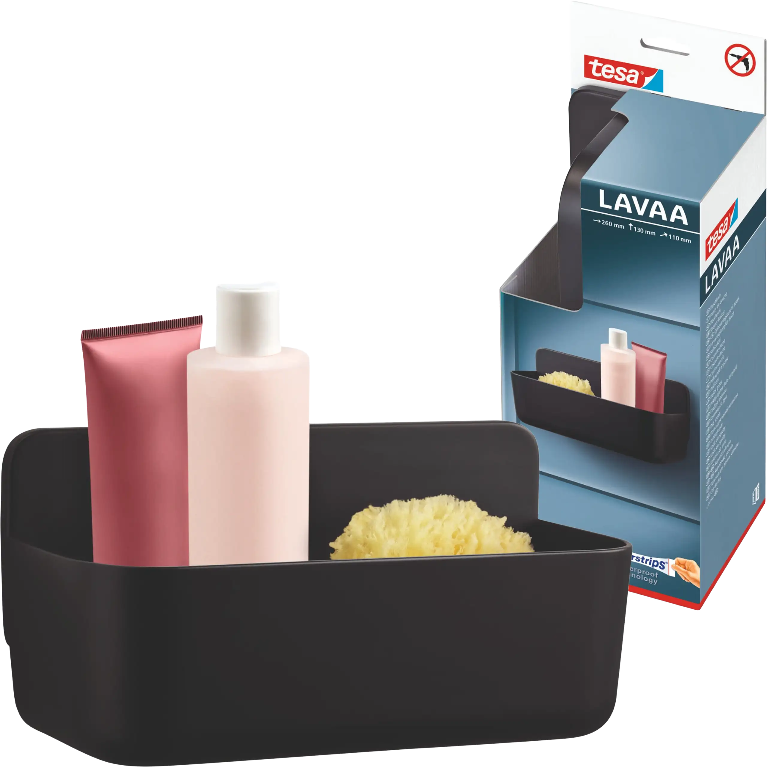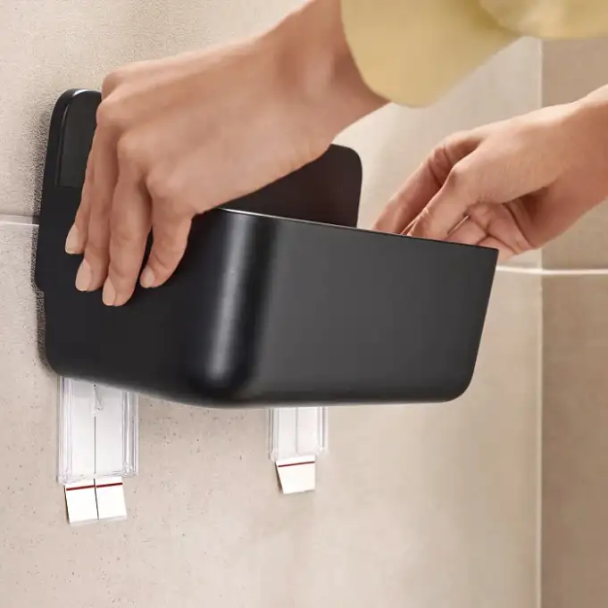 Technologia tesa® Powerstrips Waterproof umożliwia szybkie i czyste mocowanie bez użycia narzędzi. Koszyk można zamontować na płytkach, marmurze, szkle czy metalu, a po usunięciu nie pozostawia żadnych śladów. To rozwiązanie szczególnie polecane do wynajmowanych mieszkań, gdzie zachowanie nienaruszonej powierzchni ma duże znaczenie.