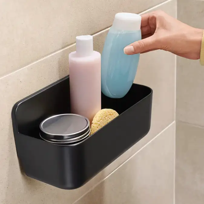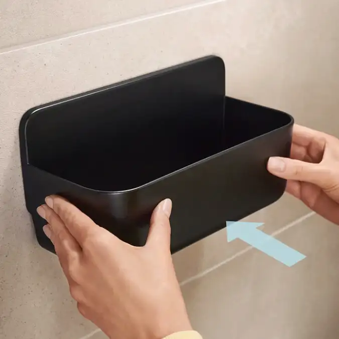 Koszyk tesa® Lavaa łączy elegancję i funkcjonalność, dzięki czemu idealnie wpisuje się w aranżacje nowoczesnych łazienek. Jego prostokątny kształt i matowe wykończenie sprawiają, że pasuje zarówno do minimalistycznych wnętrz, jak i do bardziej kontrastowych stylizacji. To praktyczny i estetyczny element, który ułatwia przechowywanie kosmetyków pod prysznicem lub przy wannie.