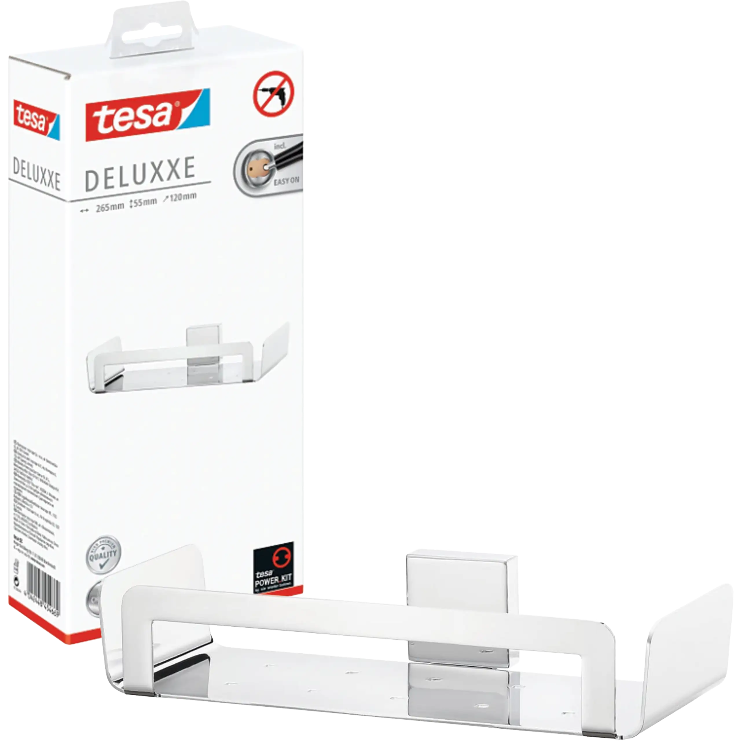 tesa® Deluxxe to akcesorium stworzone z dbałością o każdy szczegół, które łączy estetykę i funkcjonalność. Prostokątna forma uchwytu w połączeniu z chromowanym wykończeniem nadaje wnętrzu nowoczesny, designerski charakter. To nie tylko praktyczny element łazienki, ale również stylowa ozdoba, która podkreśla indywidualny klimat pomieszczenia.