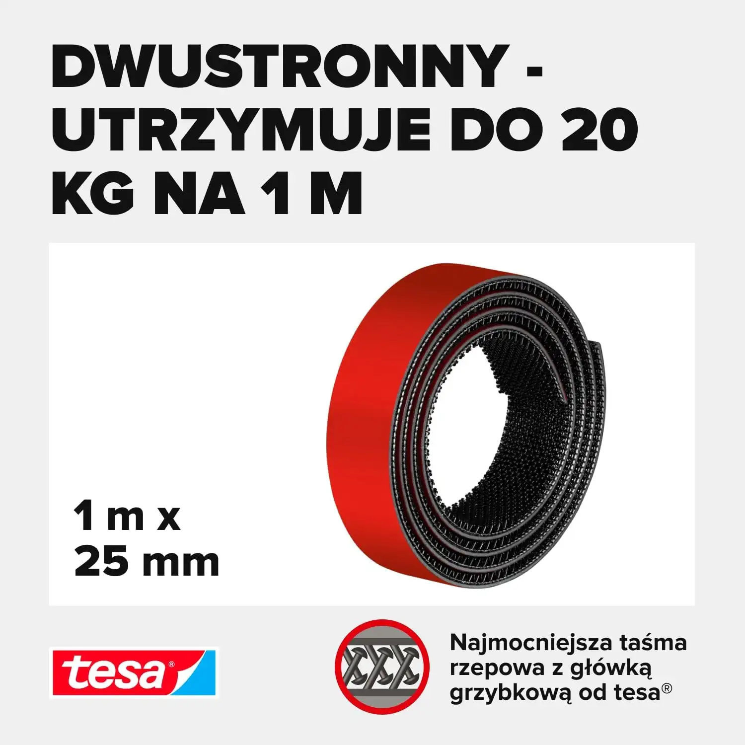 ✅ Niezwykle mocna przyczepność – wytrzymuje obciążenie do 20 kg/m.