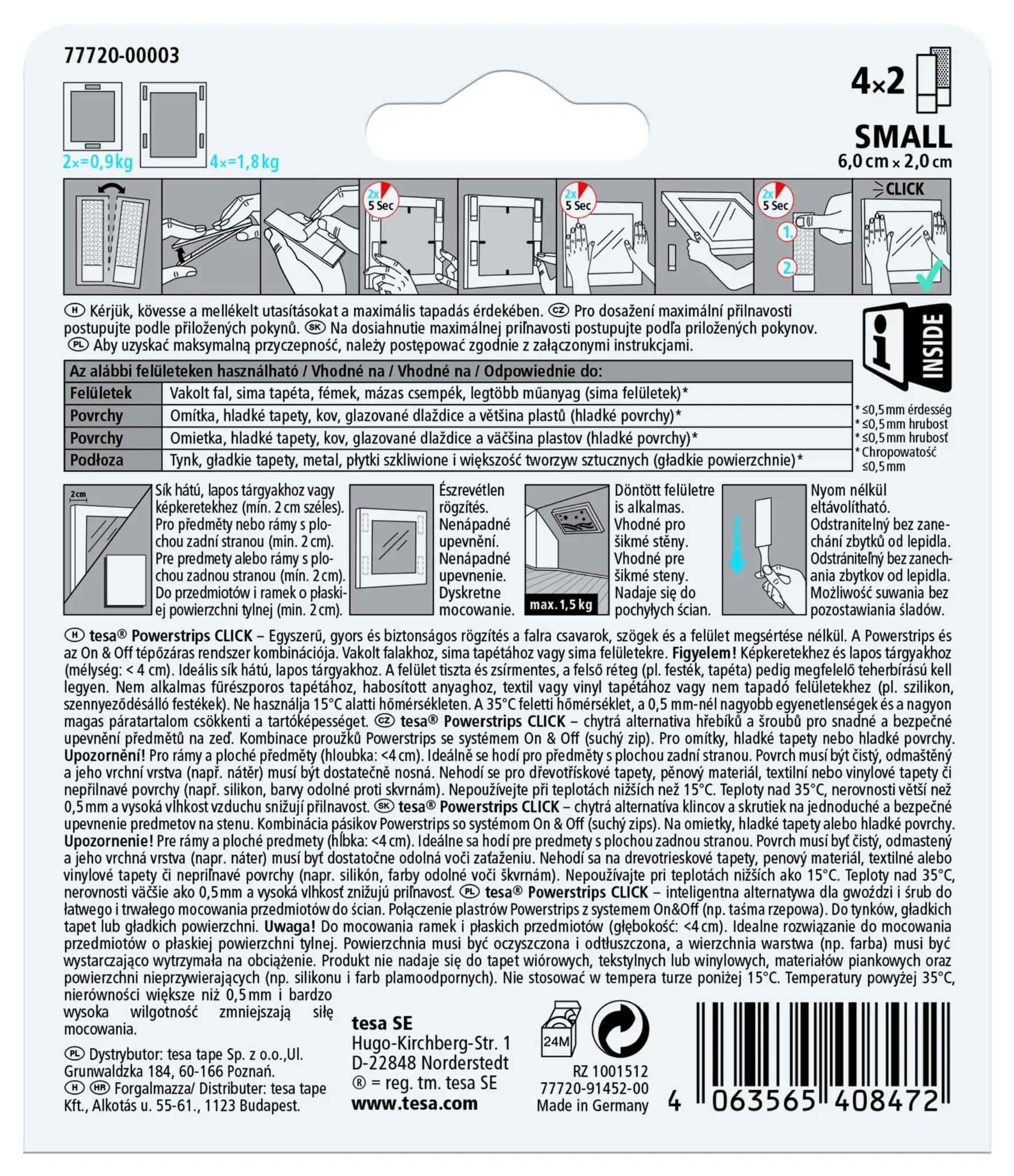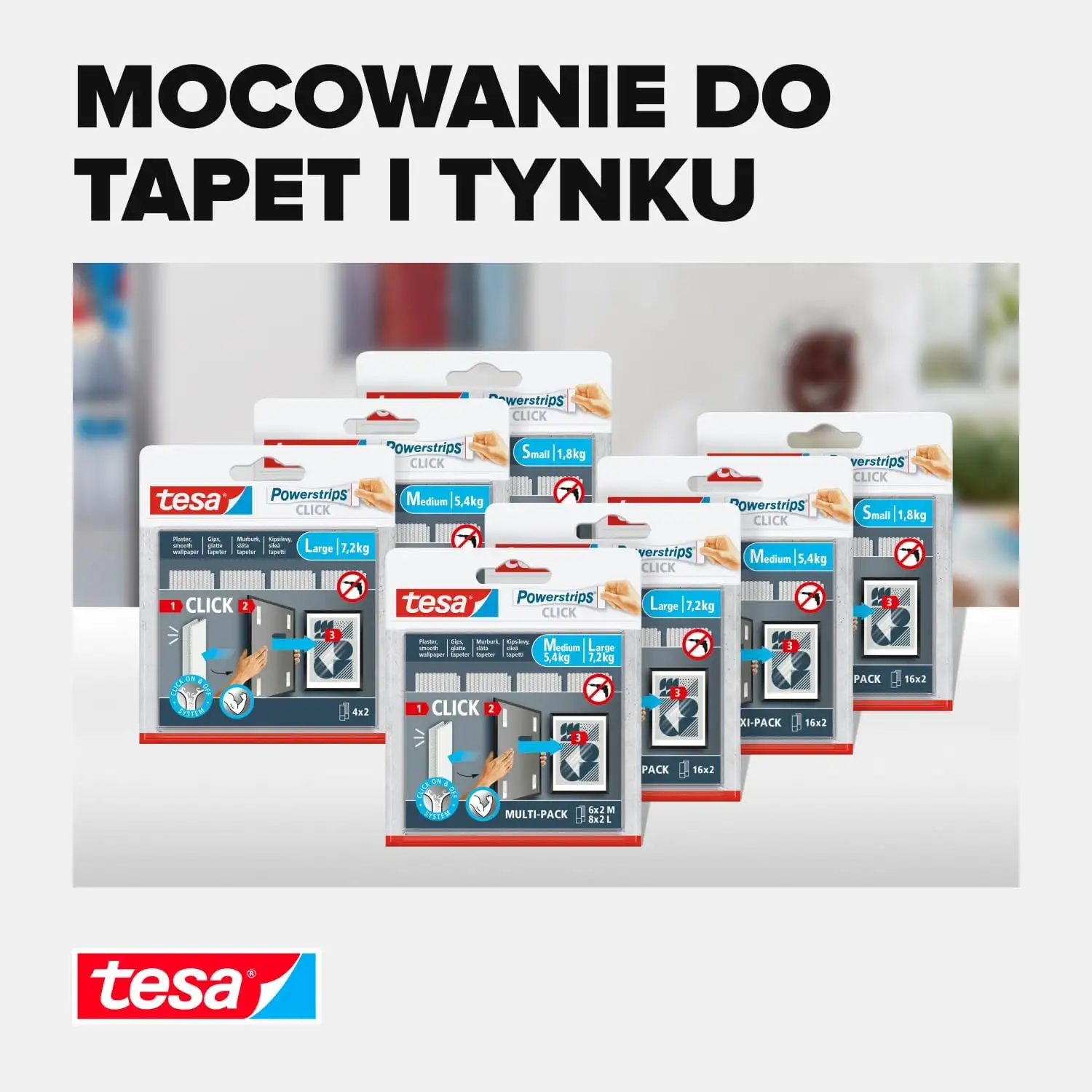 Rzepy tesa® Powerstrips CLICK to innowacyjne rozwiązanie, które zastępuje tradycyjne mocowania. Nie wymagają wiercenia, dzięki czemu ściany pozostają nienaruszone. Idealnie sprawdzają się w miejscach, gdzie często zmienia się dekoracje, np. w salonie, biurze czy pokoju dziecięcym. W każdej chwili można je usunąć bez śladów i przykleić w innym miejscu.