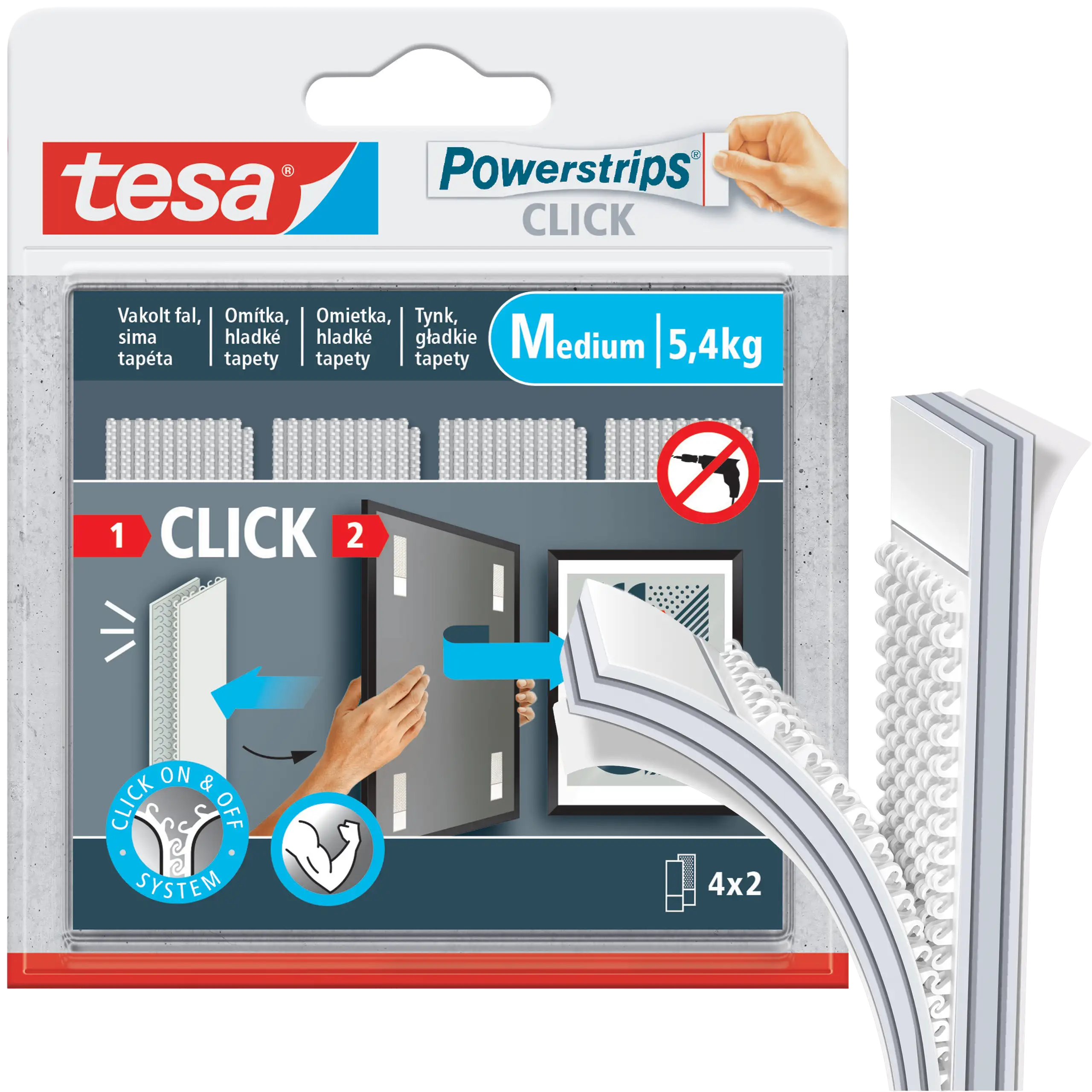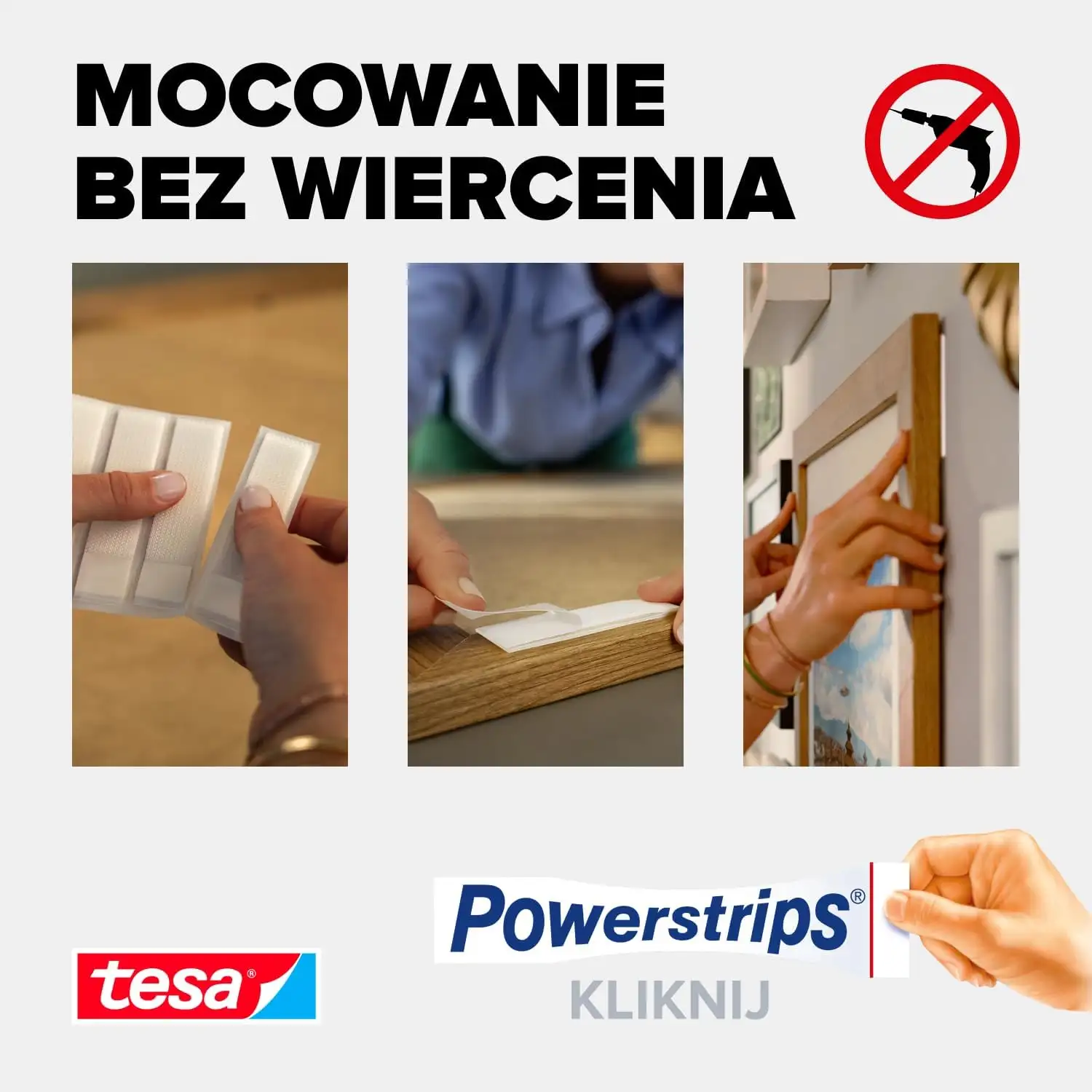 Rzepy tesa® Powerstrips CLICK to innowacyjne rozwiązanie, które zastępuje tradycyjne mocowania. Nie wymagają wiercenia, dzięki czemu ściany pozostają nienaruszone. Idealnie sprawdzają się w miejscach, gdzie często zmienia się dekoracje, np. w salonie, biurze czy pokoju dziecięcym. W każdej chwili można je usunąć bez śladów i przykleić w innym miejscu.