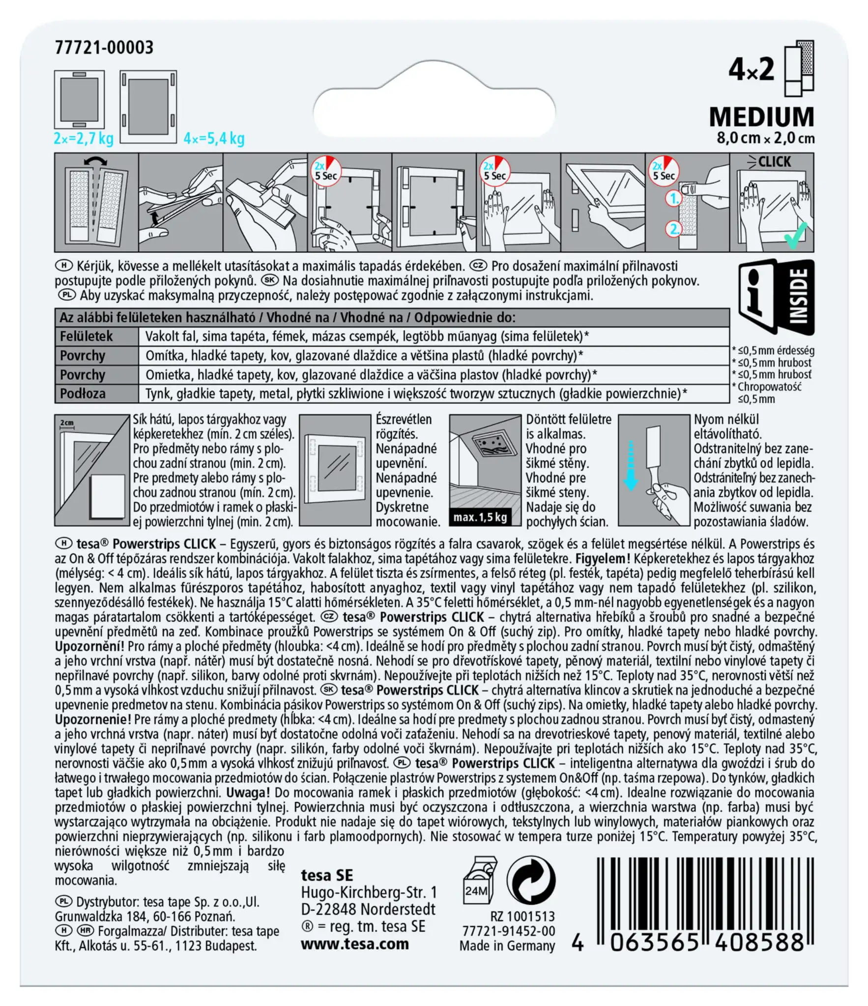 Dzięki samoprzylepnym rzepom Powerstrips® CLICK, dekorowanie wnętrza staje się niezwykle proste. Bez konieczności wiercenia i używania gwoździ, można łatwo przymocować obrazy, zdjęcia i inne ozdoby do różnych powierzchni. Mocowanie jest szybkie i pewne, a charakterystyczne "kliknięcie" informuje, że elementy rzepów zostały prawidłowo połączone.