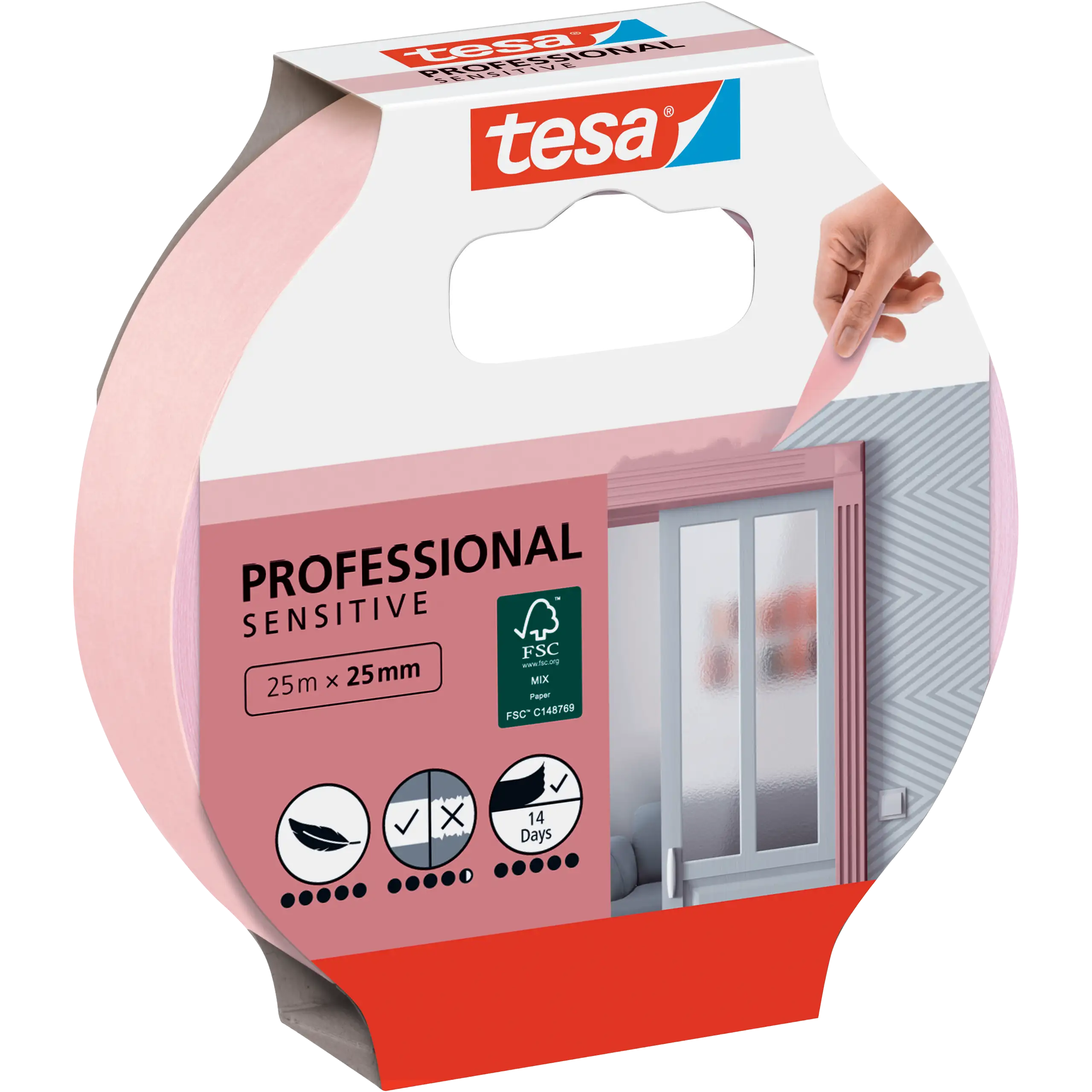 Taśma malarska tesa® Professional Sensitive została stworzona z myślą o delikatnych podłożach , takich jak tapety, farby dekoracyjne czy cienkie powłoki ścienne.