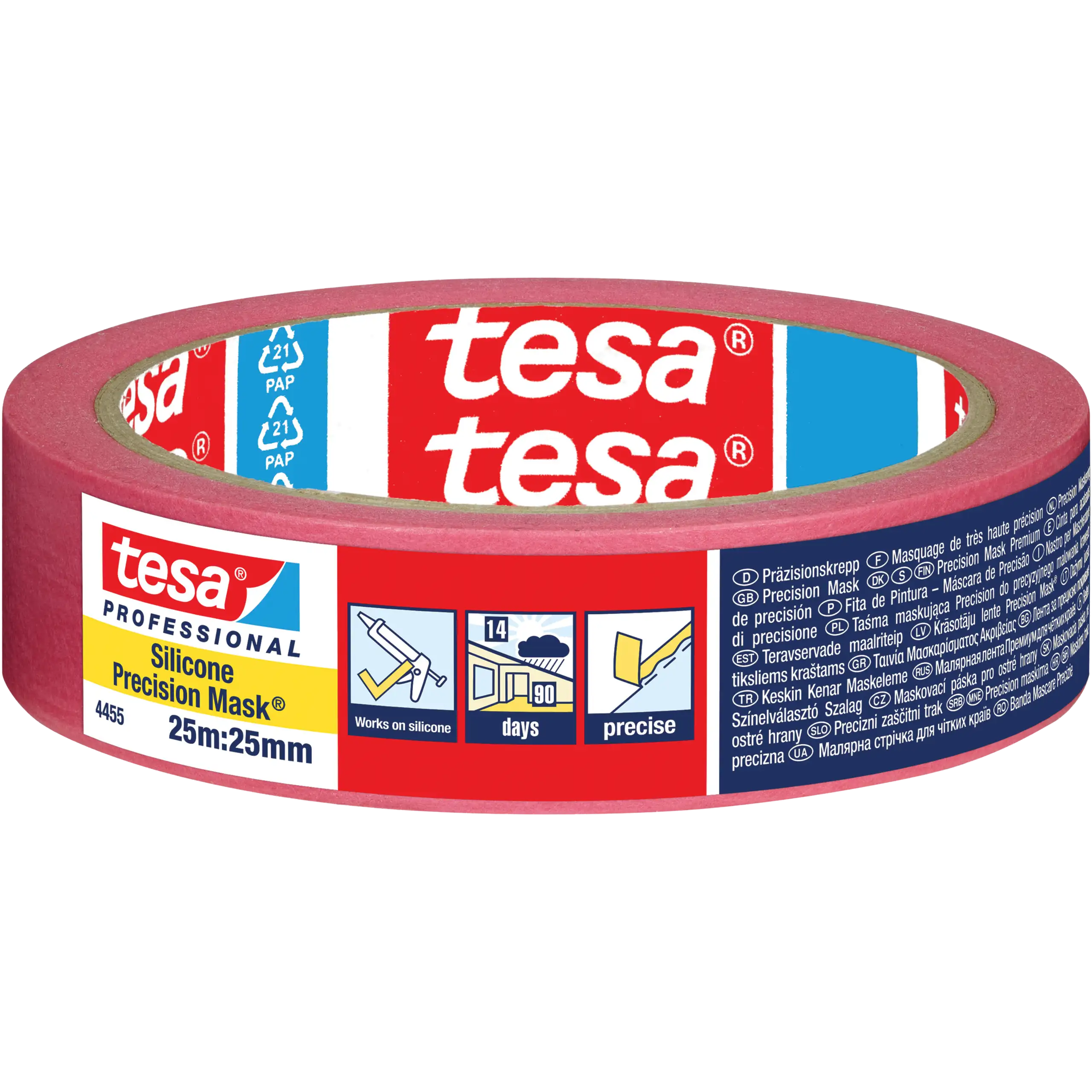 Taśma tesa® 4455 Silicone Precision Mask to wysokiej klasy papierowa taśma maskująca , zaprojektowana specjalnie do prac malarskich i lakierniczych na trudnych, odpornych na zabrudzenia powierzchniach.