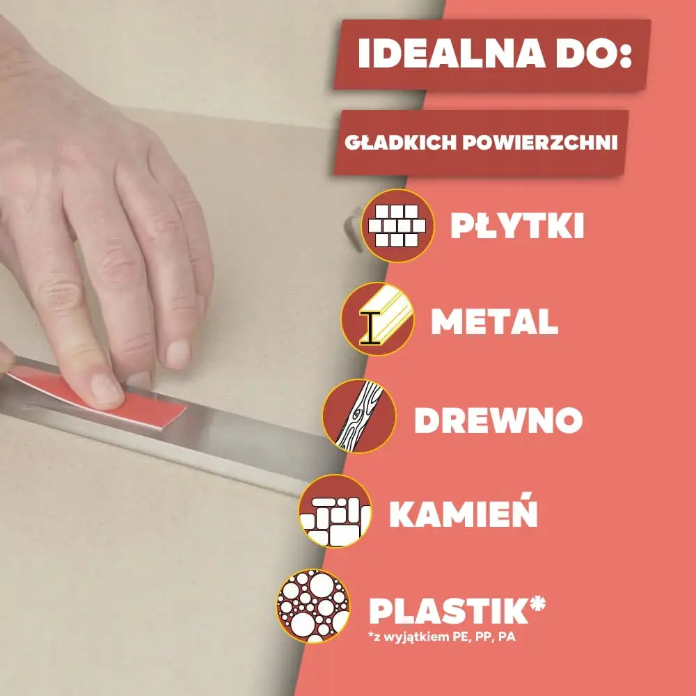 Świetnie sprawdza się w codziennych zastosowaniach – od montażu listew przypodłogowych, przez uchwyty i haczyki, po akcesoria samochodowe czy ozdoby ścienne. To wygoda i pewność mocowania w jednym.