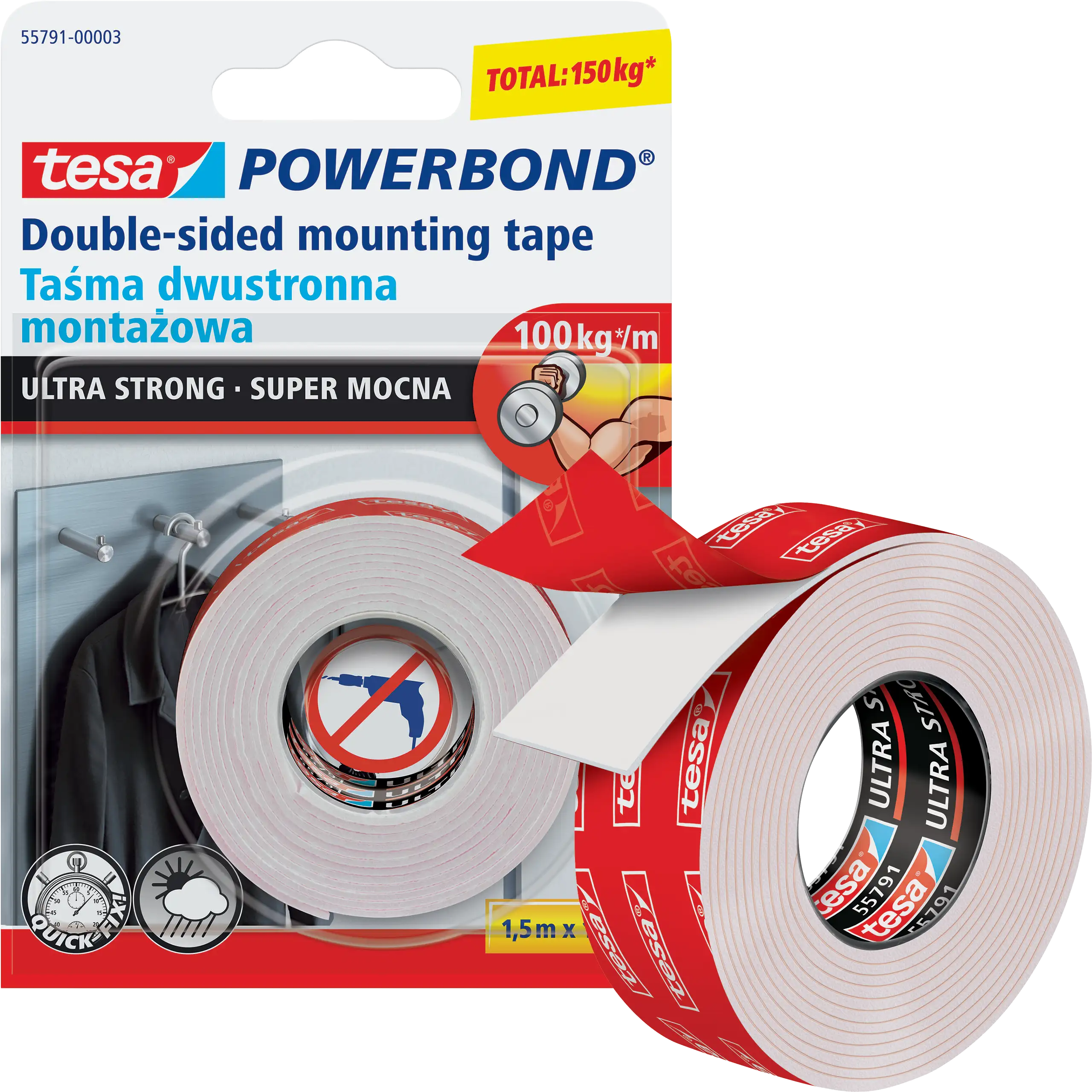 Taśma tesa® Powerbond Super Mocna to doskonała alternatywa dla śrub, gwoździ i wiertarki. Dzięki imponującej sile klejenia – aż do 10 kg na 10 cm taśmy – pozwala trwale mocować nawet cięższe przedmioty .