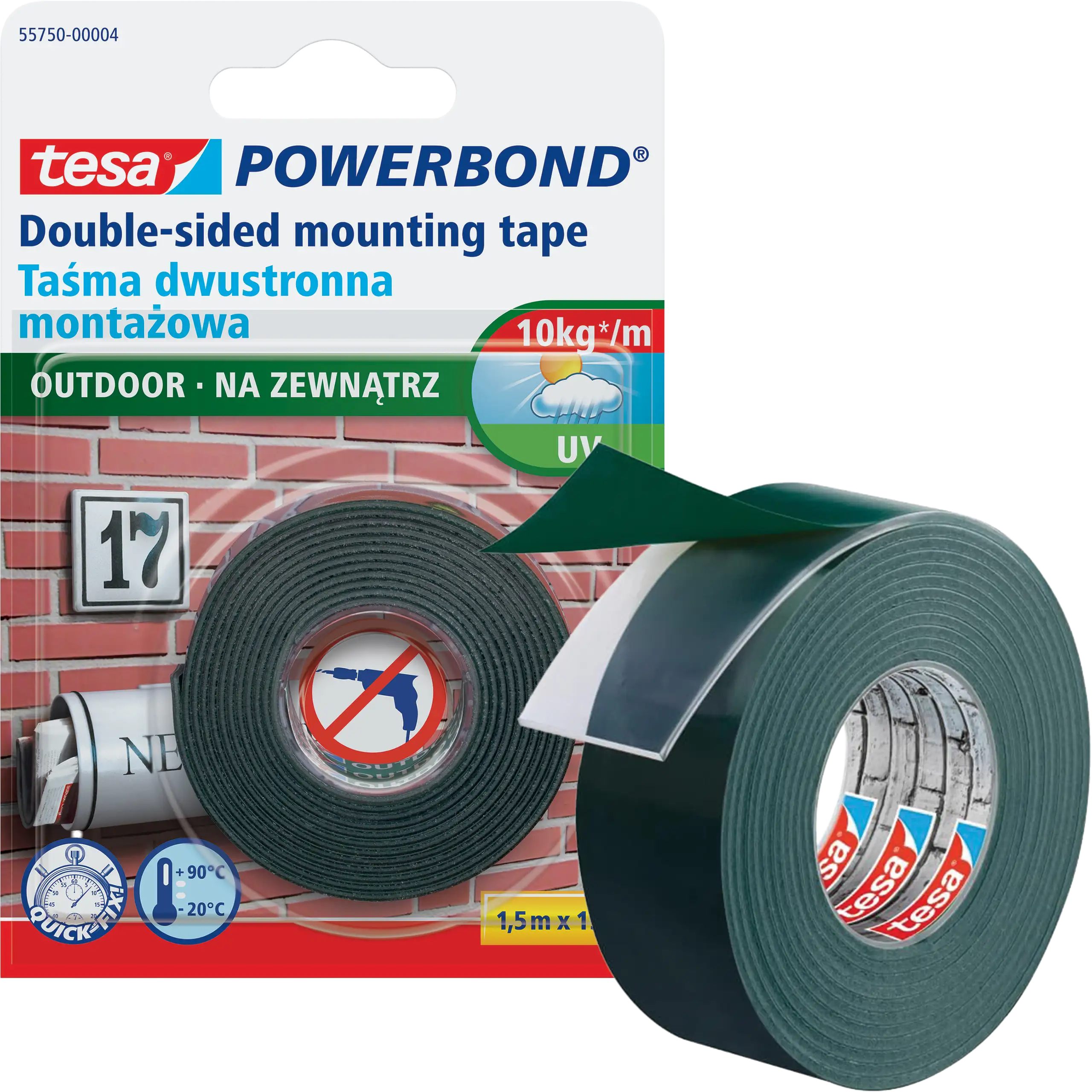 Taśma tesa® Powerbond to niezawodne rozwiązanie do użytku zewnętrznego. Dzięki wysokiej odporności na warunki atmosferyczne doskonale sprawdza się przy mocowaniu tabliczek, numerów domów czy elementów dekoracyjnych na elewacji. Jej trwała siła klejenia zapewnia pewny montaż przez długi czas.