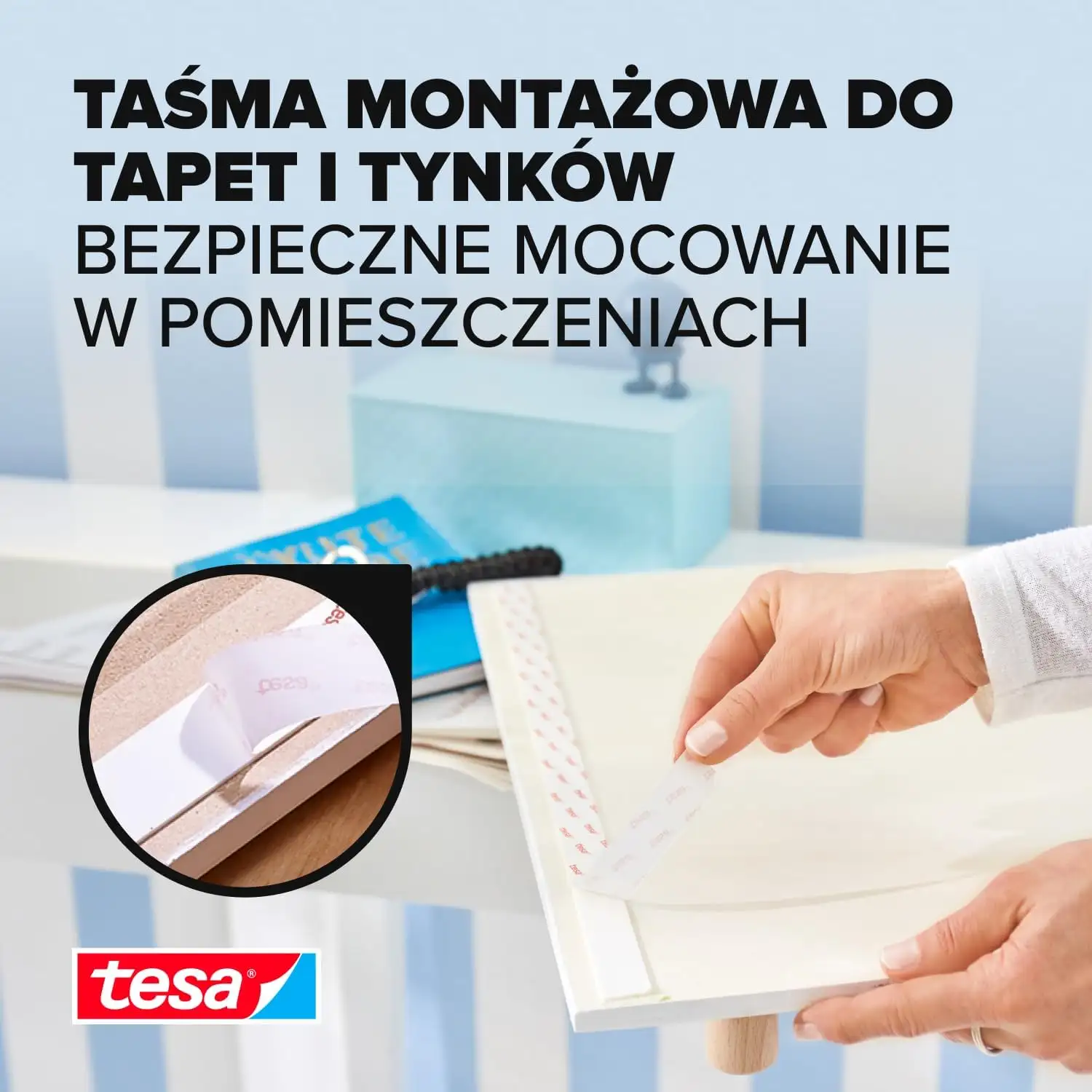 Taśma tesa® do tapet i tynku została zaprojektowana do mocowania lekkich przedmiotów na powierzchniach fakturowanych i delikatnych .