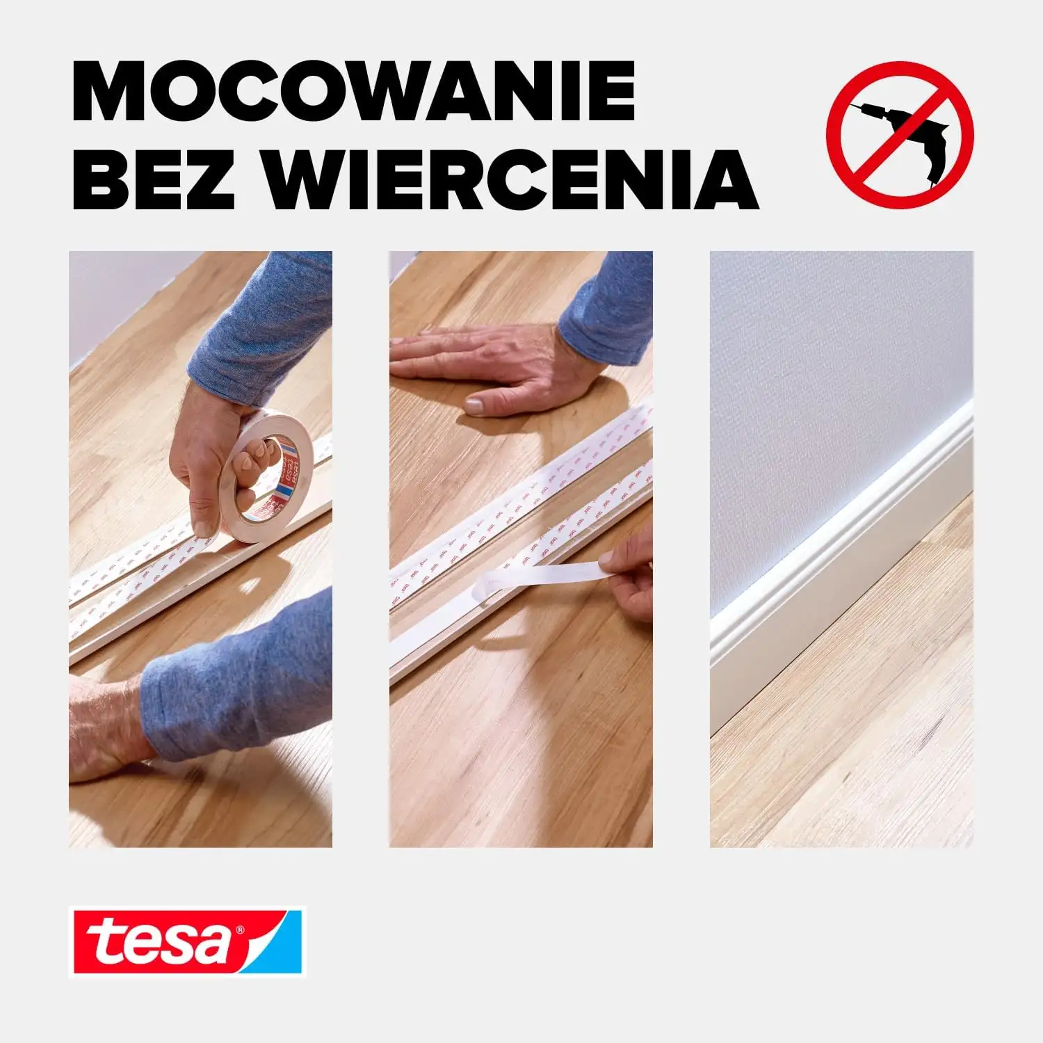 Taśma tesa® do tapet i tynku została zaprojektowana do mocowania lekkich przedmiotów na powierzchniach fakturowanych i delikatnych. Dzięki elastycznej piance PE dopasowuje się do nierówności, zapewniając trwałe i bezpieczne mocowanie, nawet przy nierównych podłożach.