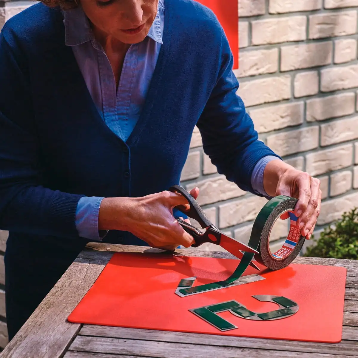 Taśma tesa® Powerbond to niezawodne rozwiązanie do użytku zewnętrznego. Dzięki wysokiej odporności na warunki atmosferyczne doskonale sprawdza się przy mocowaniu tabliczek, numerów domów czy elementów dekoracyjnych na elewacji. Jej trwała siła klejenia zapewnia pewny montaż przez długi czas.