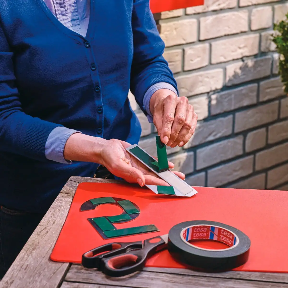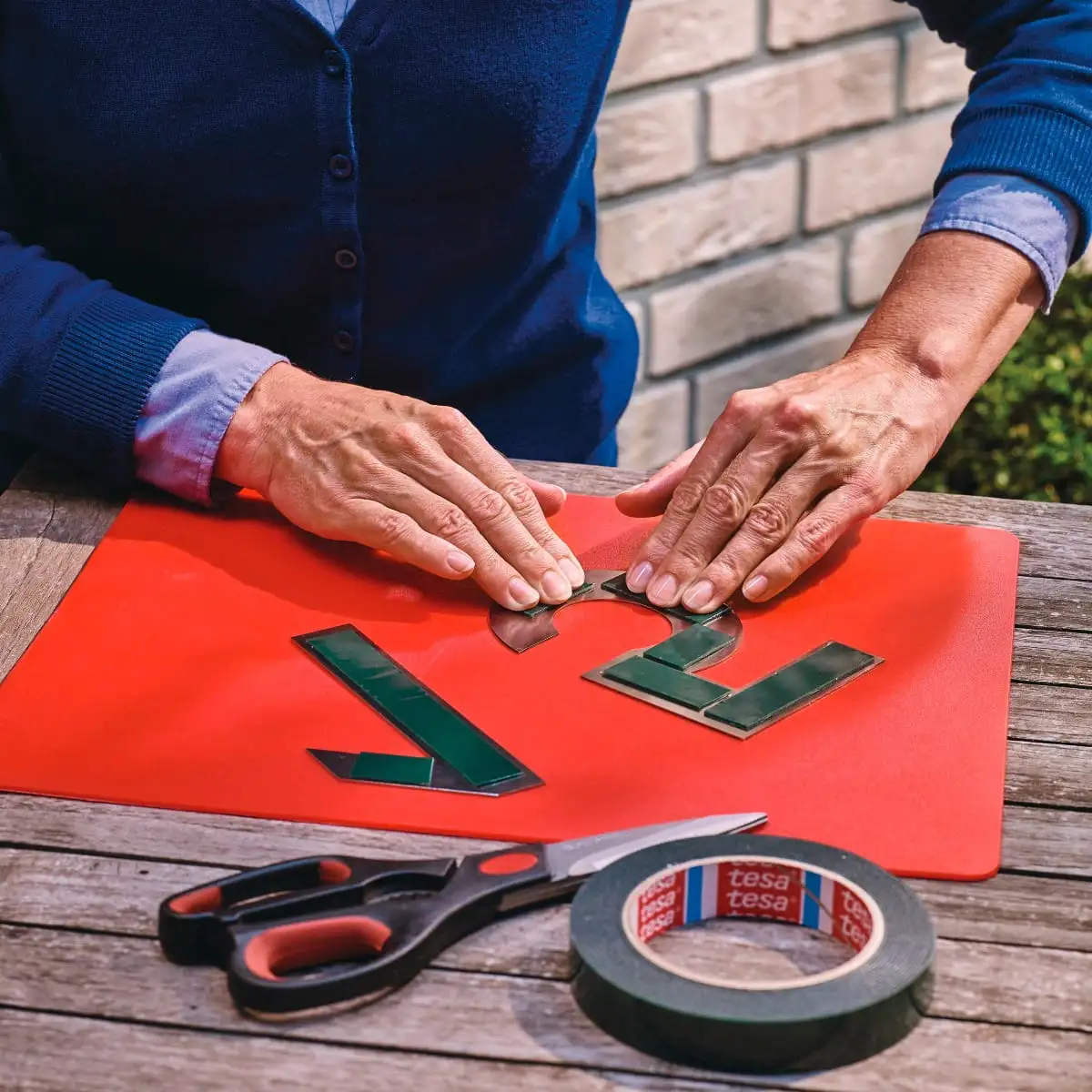Taśma tesa® Powerbond to niezawodne rozwiązanie do użytku zewnętrznego. Dzięki wysokiej odporności na warunki atmosferyczne doskonale sprawdza się przy mocowaniu tabliczek, numerów domów czy elementów dekoracyjnych na elewacji.