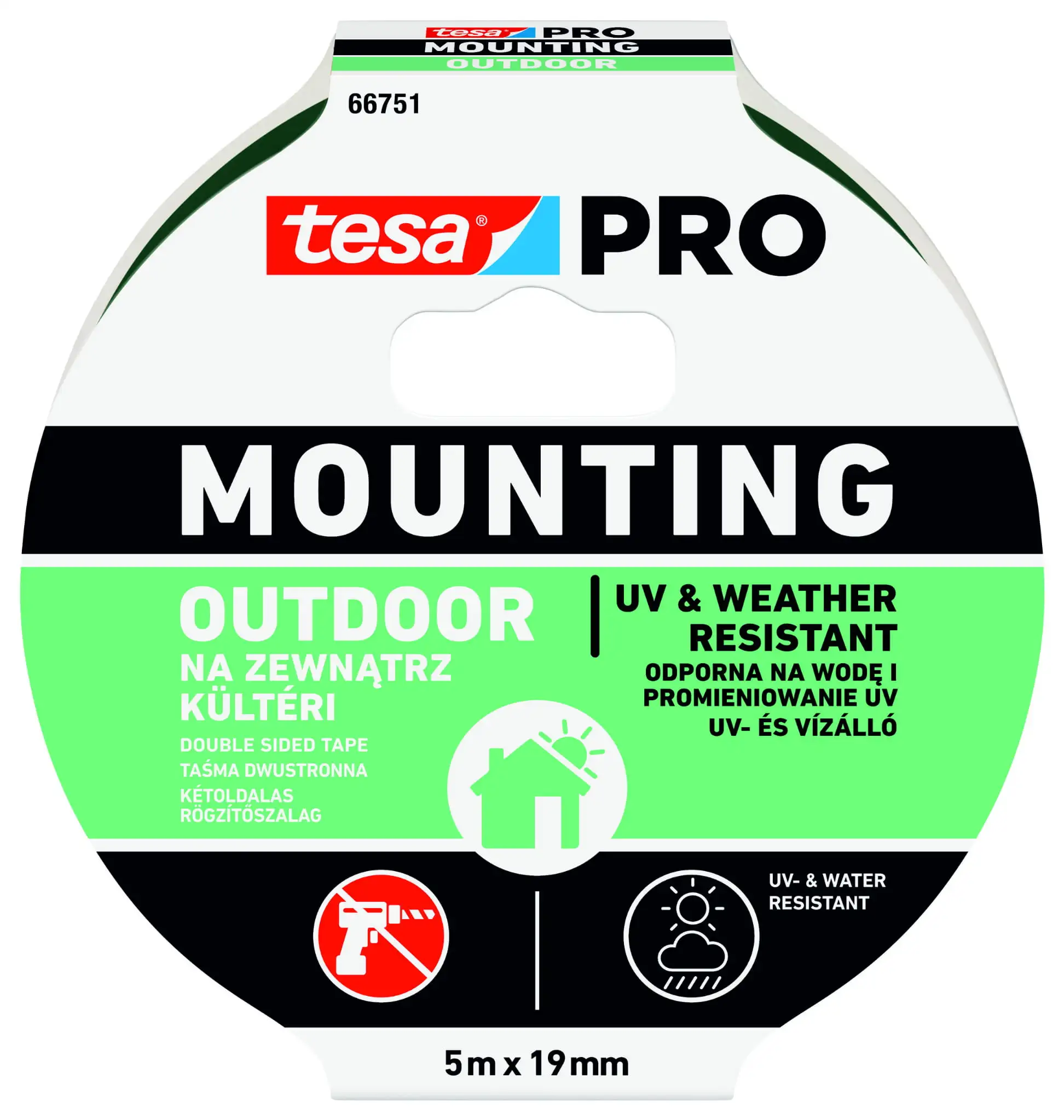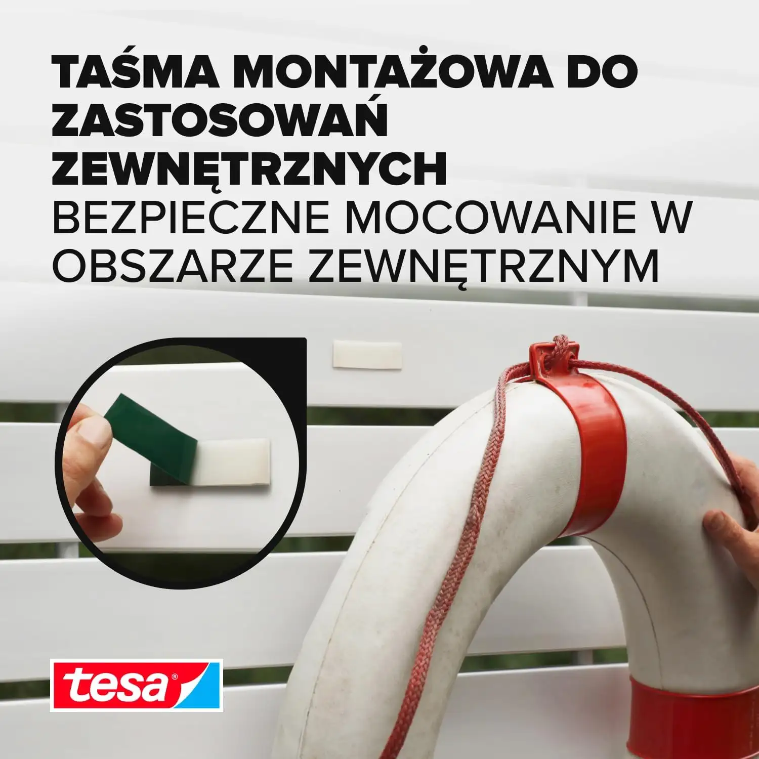 Taśma tesa® Powerbond to niezawodne rozwiązanie do użytku zewnętrznego. Dzięki wysokiej odporności na warunki atmosferyczne doskonale sprawdza się przy mocowaniu tabliczek, numerów domów czy elementów dekoracyjnych na elewacji.