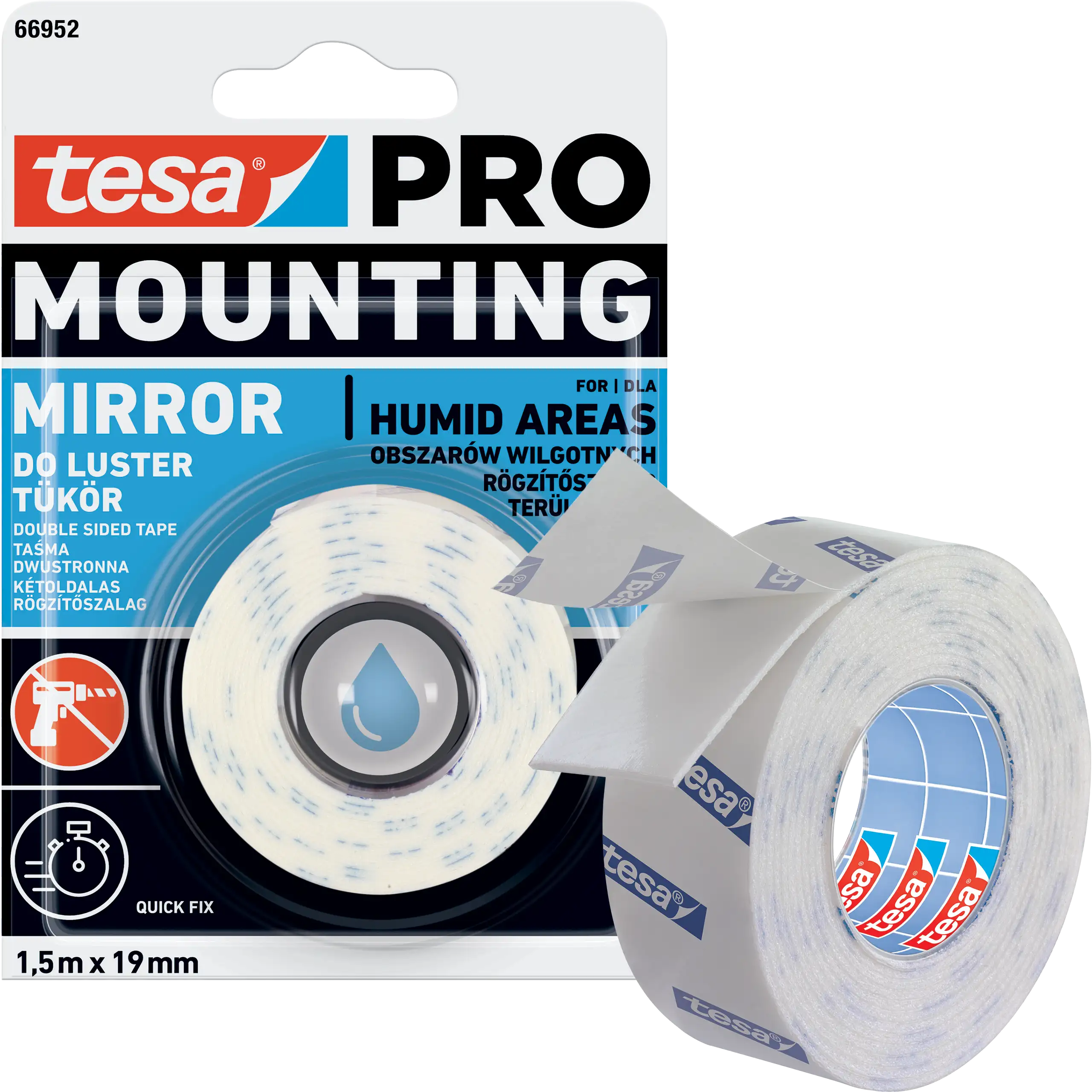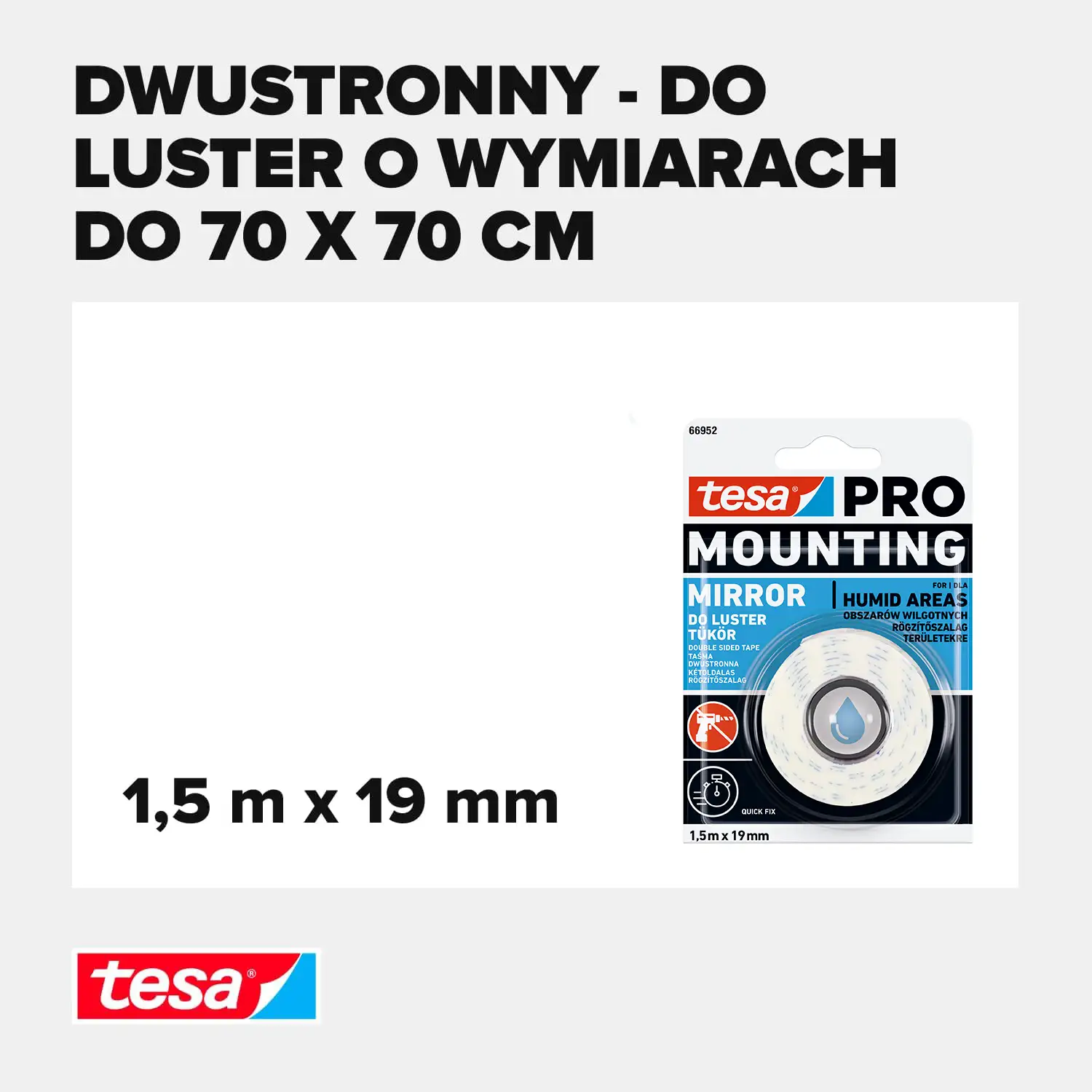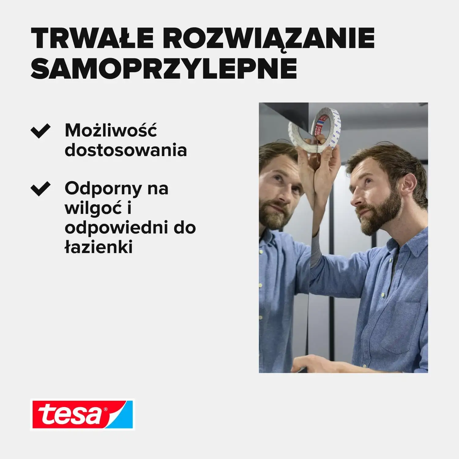 Dwustronna taśma montażowa tesa® Powerbond zapewnia wyjątkową siłę klejenia , pozwalając zamontować lustra bez użycia śrub czy kołków .