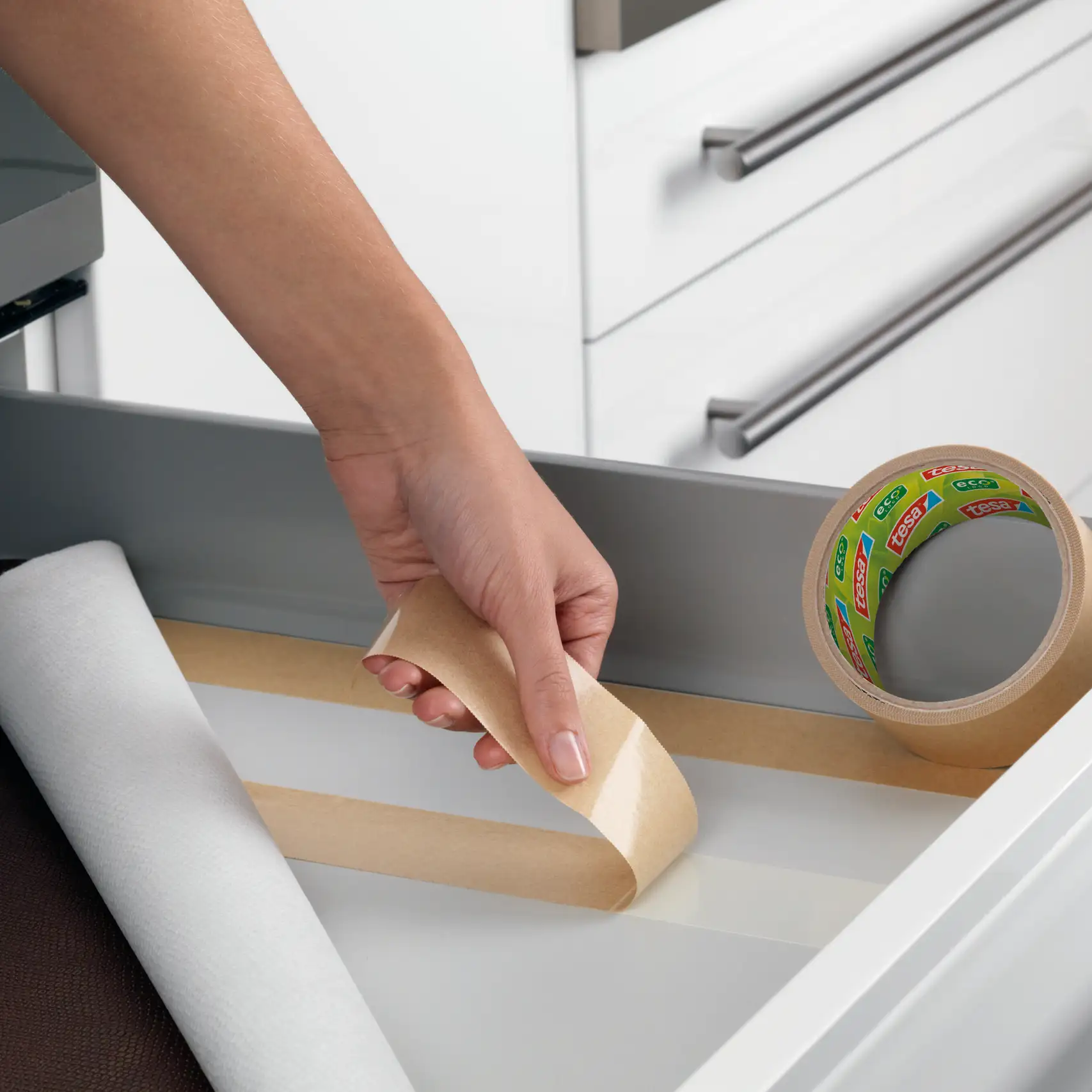 tesa® Double-Sided Tape Pro Nature oferuje silny klej syntetyczny , który gwarantuje wysoką przyczepność na różnorodnych powierzchniach – od kartonu, przez plastik, aż po metal czy szkło .