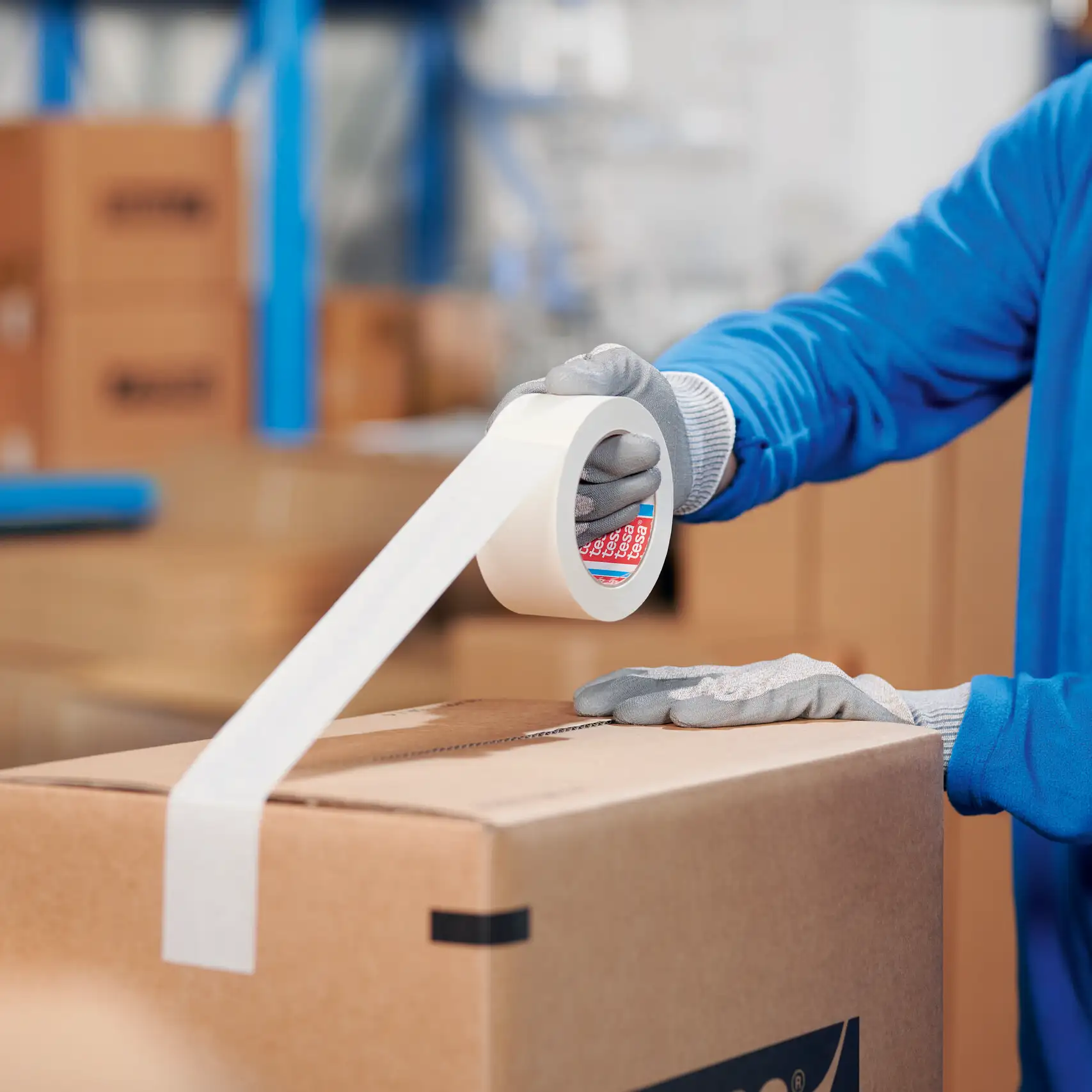 Taśma doskonale sprawdza się przy zaklejaniu lekkich opakowań , szczególnie w kartonach pochodzących z recyklingu.