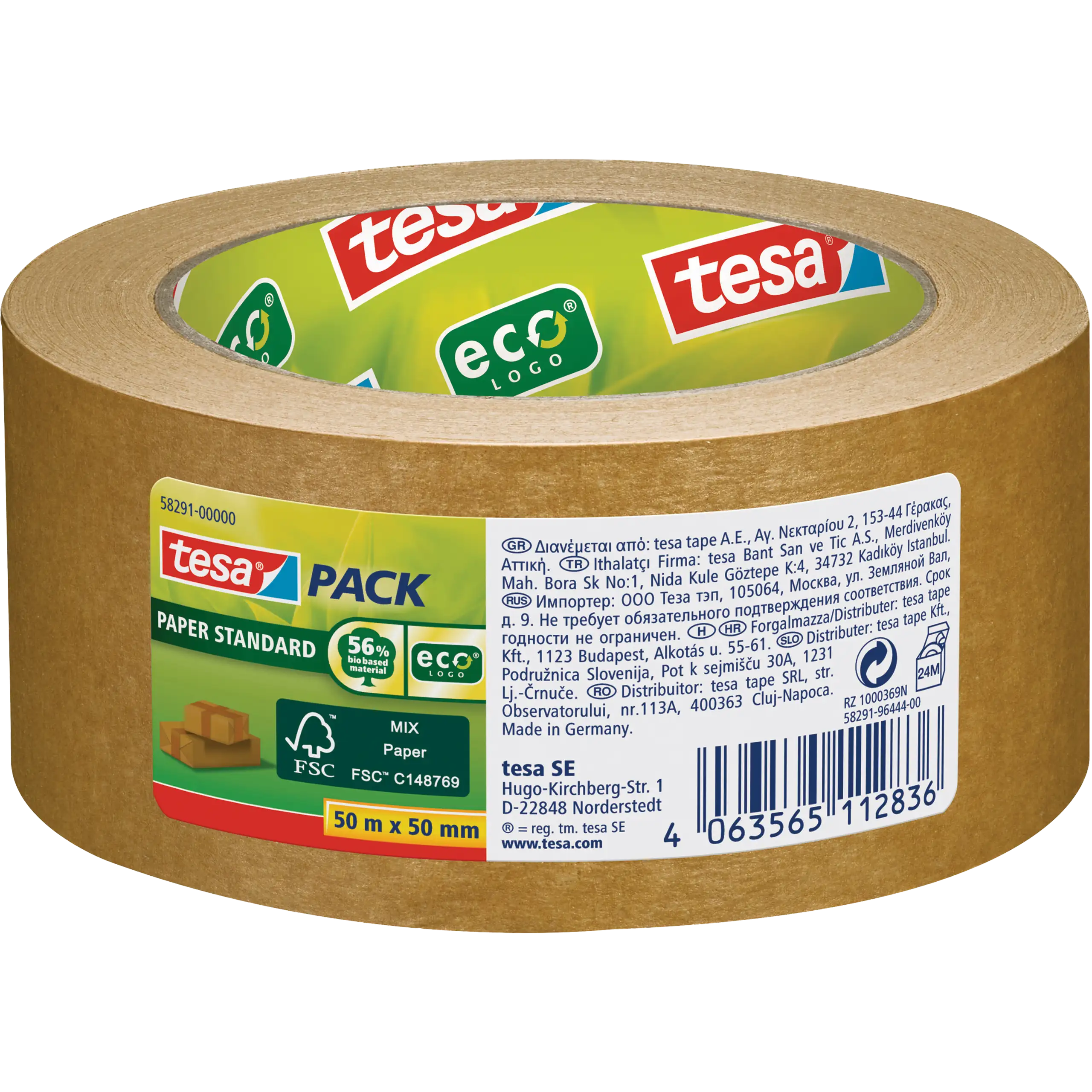Taśma tesapack® PAPER STANDARD to produkt stworzony z myślą o zrównoważonym pakowaniu . Papier pochodzi z certyfikowanych źródeł FSC® , a klej z naturalnego kauczuku.