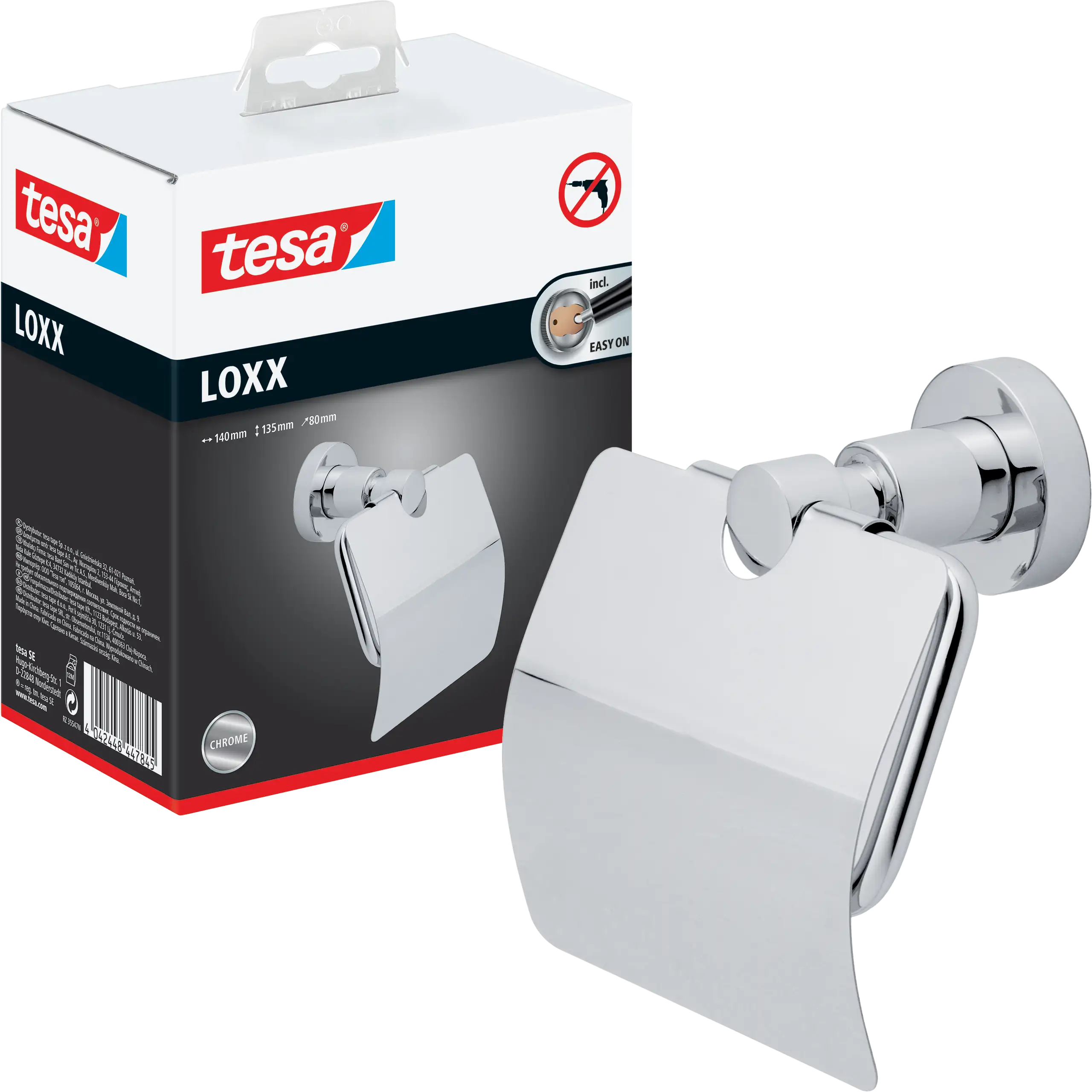 Uchwyt Na Papier Toaletowy Samoprzylepny Tesa LOXX Chromowany Metalowy