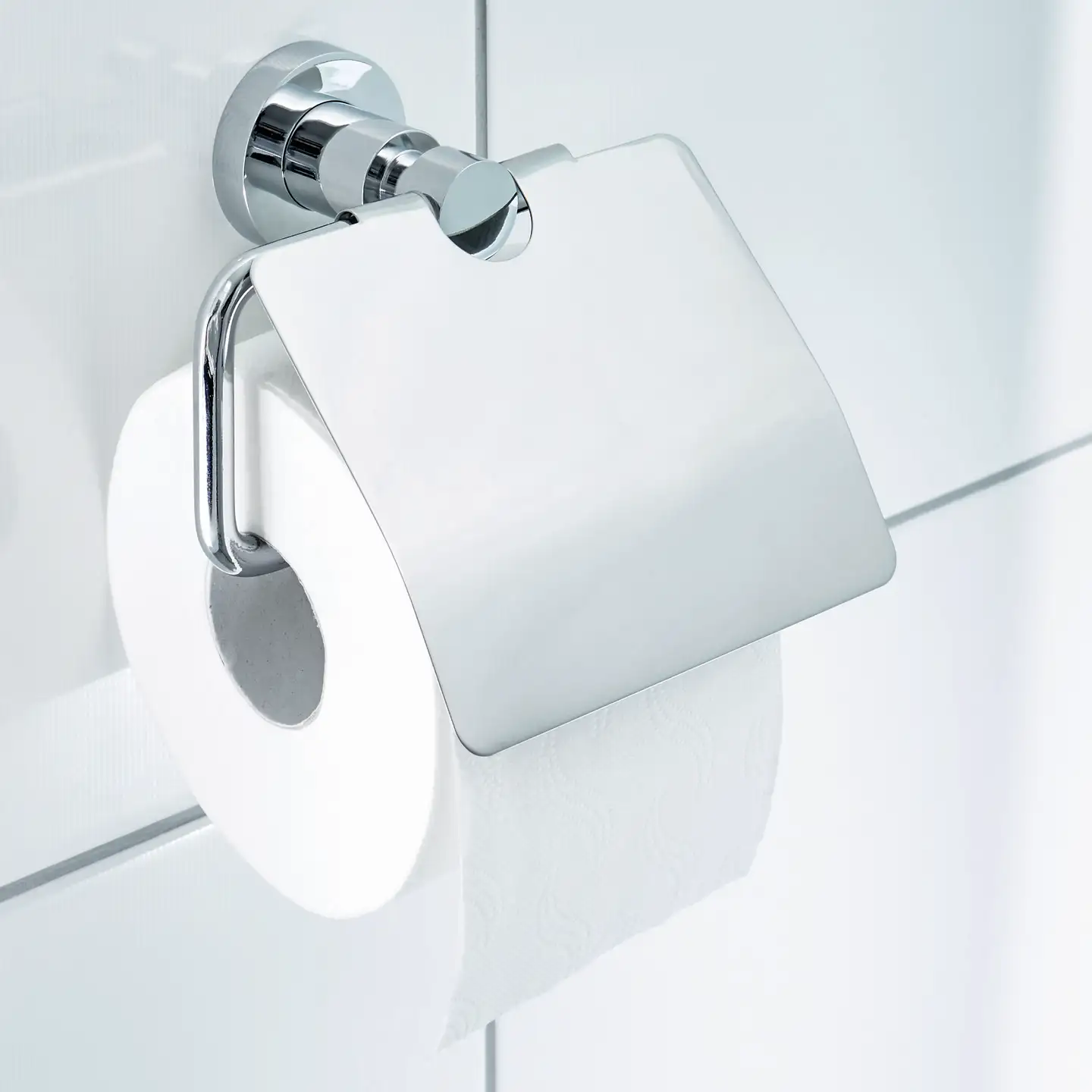 Chromowane wykończenie i zaokrąglone kształty nadają uchwytowi elegancki, ponadczasowy design . Przykrywka nie tylko pełni funkcję estetyczną, ale też chroni papier, co zwiększa komfort użytkowania.