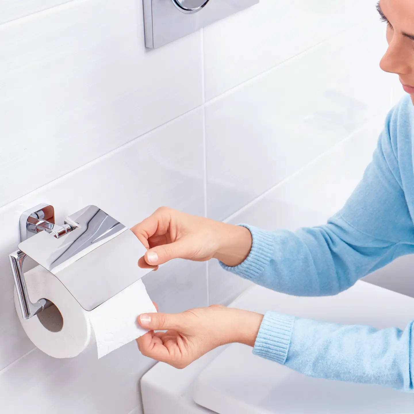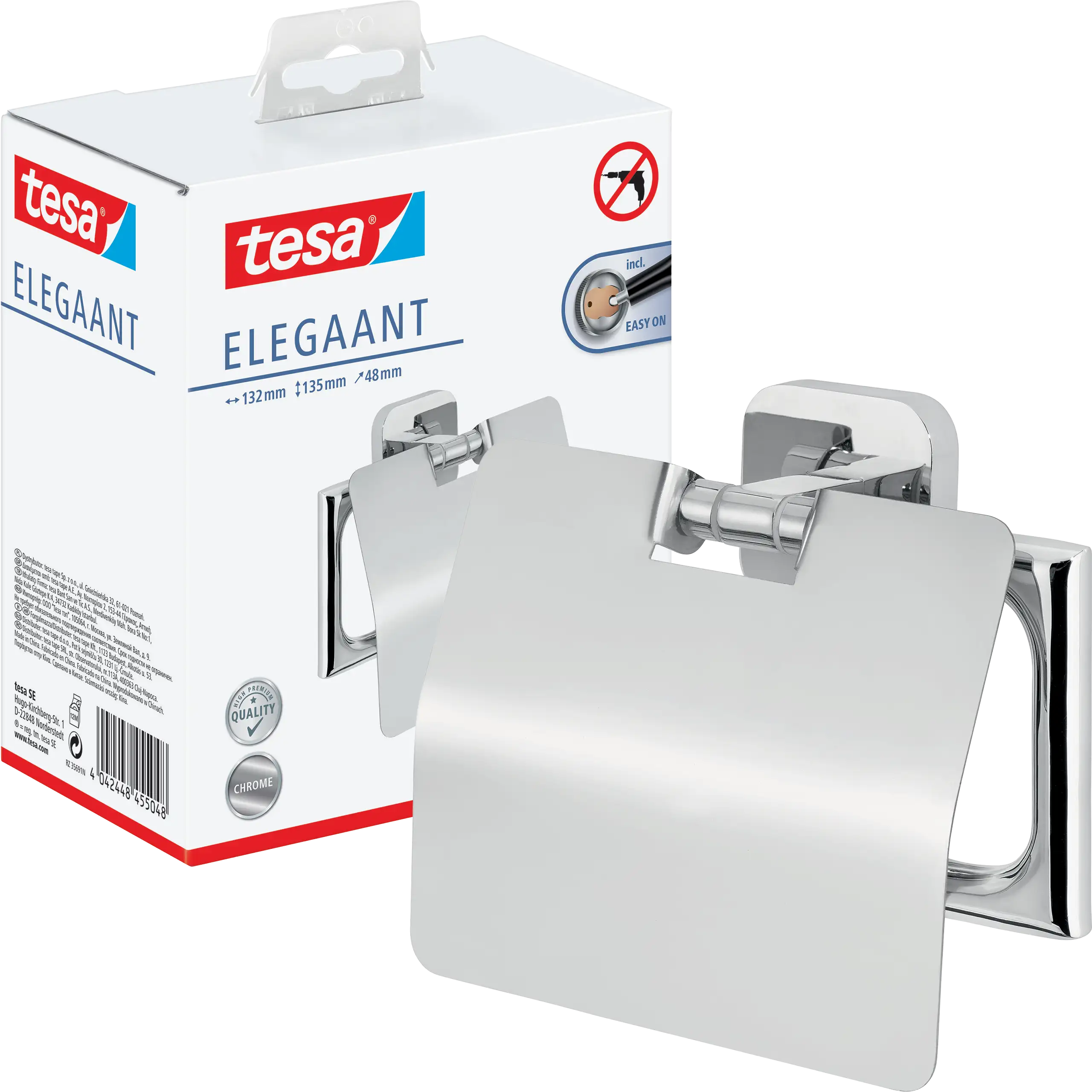 tesa® Elegaant wyróżnia się unikalnym połączeniem prostoty i wyrafinowania . Kwadratowa forma z delikatnie zaokrąglonymi narożnikami i chromowanym połyskiem sprawia, że uchwyt staje się ozdobą każdej łazienki.